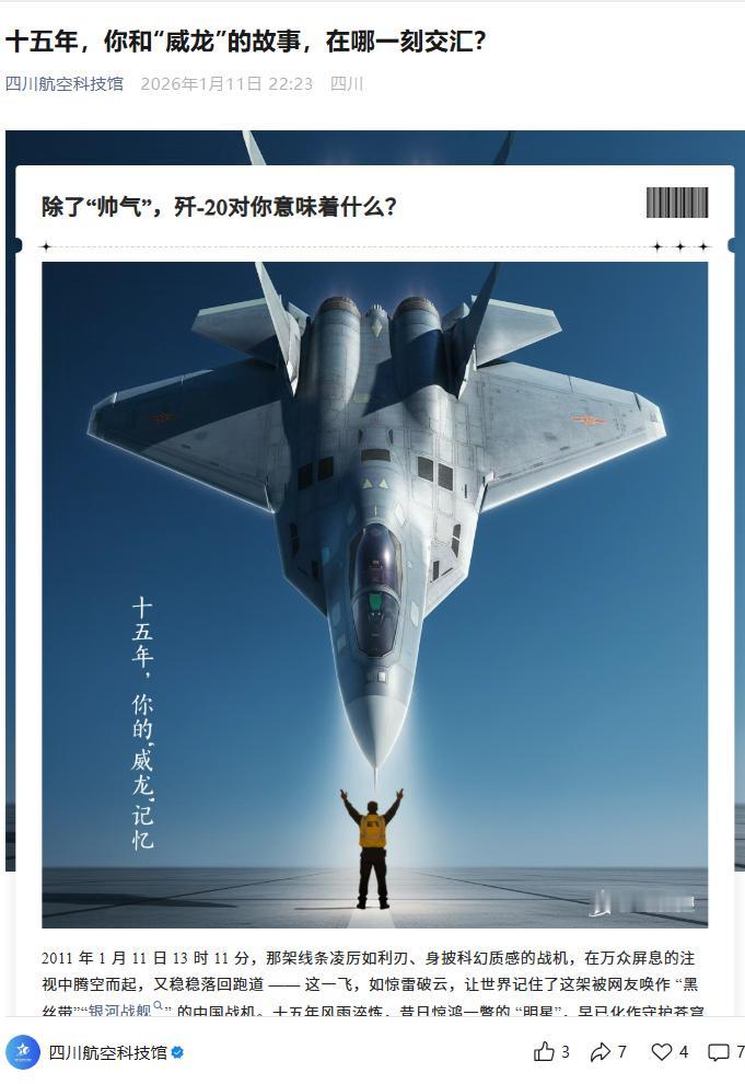 [捂脸] 又是“临时工”干的吧——四川航空科技馆把 F22 当成 歼20……你说他懂吧,发动机、尾喷口和座舱还对不上,原来不是真正的 F22 照片(参见图2),是拿AI图凑数……你说他不懂吧,他居然还知道在机翼上添加“八一”军徽。 唉,“航空科技馆”……[捂脸]