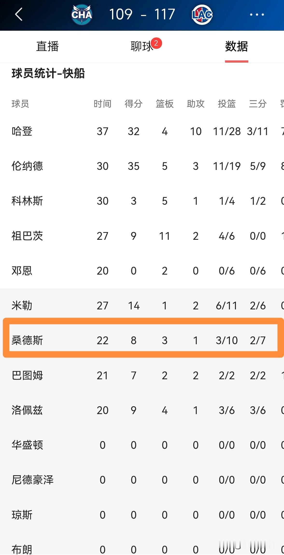我对快船新星桑德斯真是恨铁不成钢!在今天快船主场以117:109战胜黄蜂的比赛中