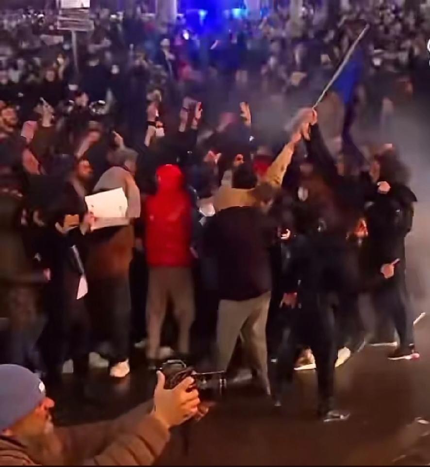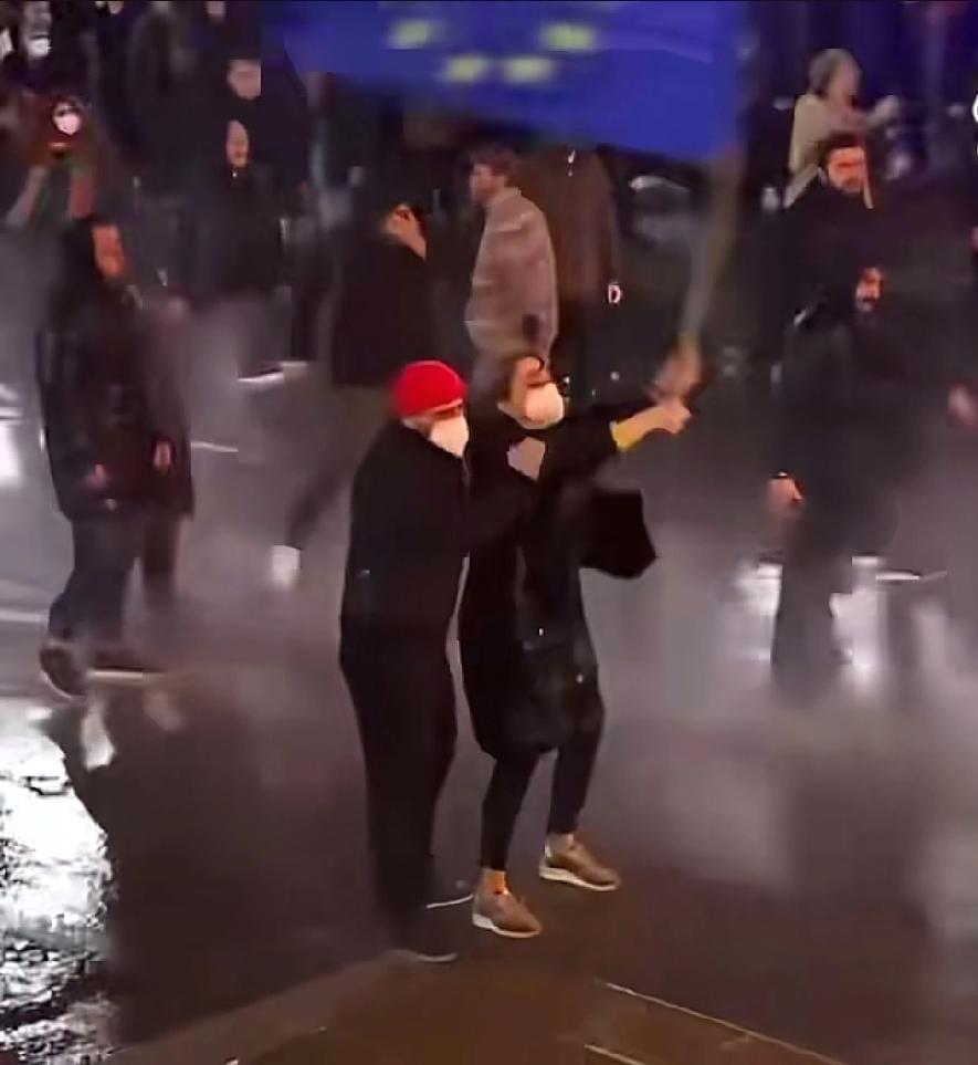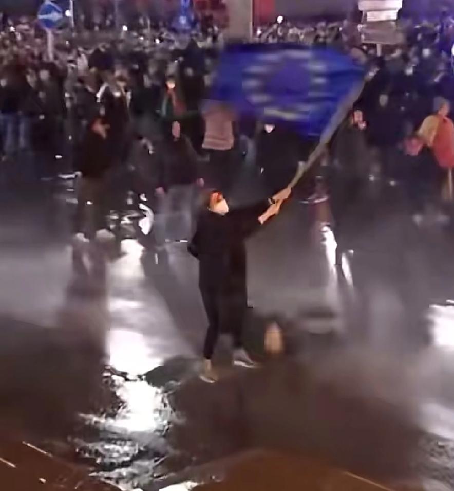 德黑兰街头, 一个人高举旗帜在水枪下踉踉跄跄跄, 第二个人拼尽全力搀扶着她并肩前行, 第三个人上来了, 一群人上来了, 。。。 面对冰冷刺骨的水柱, 他们毫不退却, 互相拥抱在一起, 用血肉之躯聚成一面抵抗的墙。 虽是孱弱, 却是悲壮的催人泪下, 这就是伊朗人民的力量。