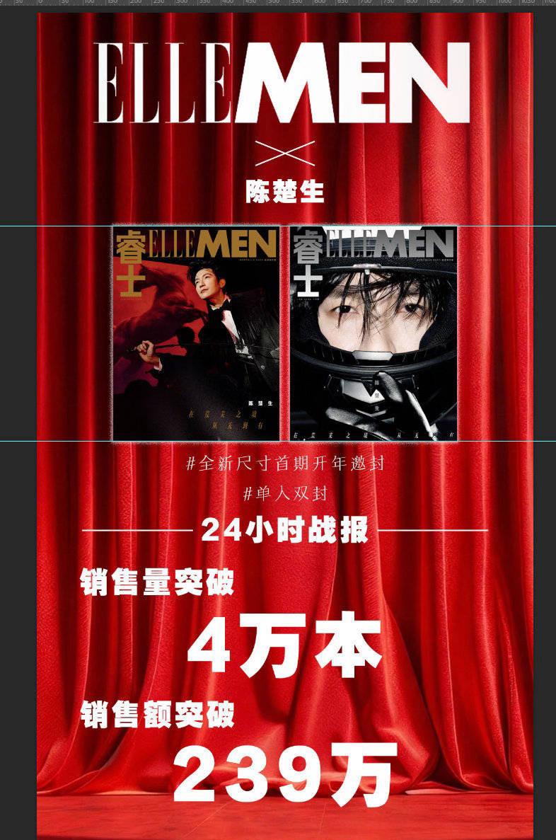 恭喜陈楚生ELLEMEN双封刊24小时破4W! 这就是生哥的影响力……。 开售第一天就取得如此战绩—-4万本近239万元。 这里面也有我的两本,这是也我买的第一本杂志。 看到还🈶花生姐成百本的买,厉害👍。