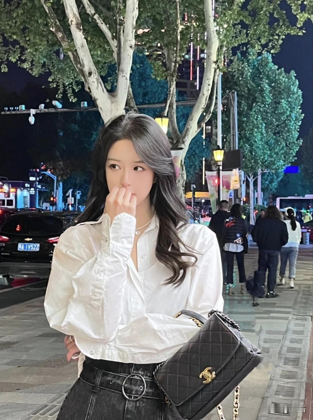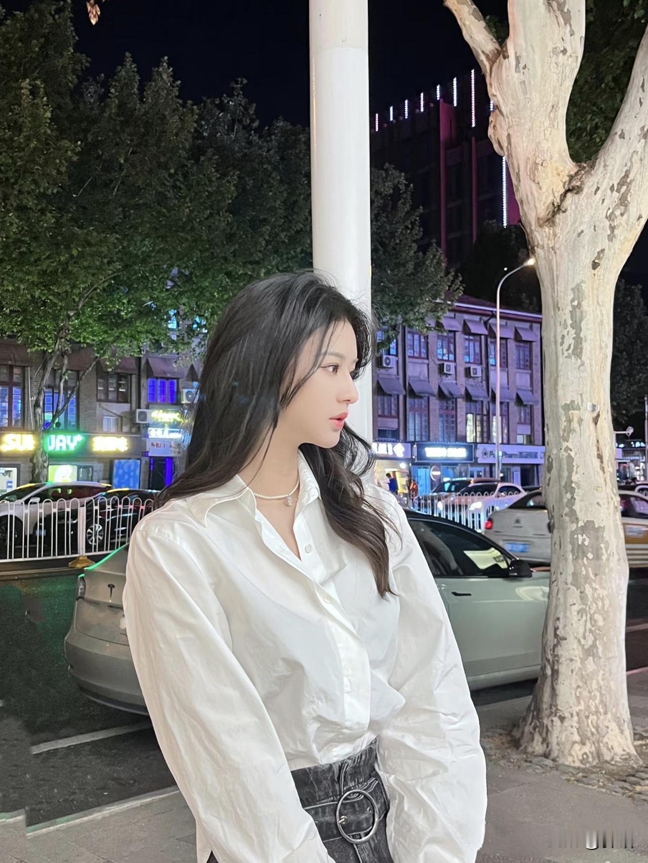 美图欣赏,看图写诗 《夜街漫影》 七言绝句 华灯初上夜街长, 白衫漫卷晚风扬。 青丝垂鬓藏星眸, 一抹嫣然落巷光。 现代诗 霓虹揉散了夜色, 白衬衫在晚风里晃荡, 黑长发扫过肩头, 像掠过城市的温柔浪。 指尖轻抬的瞬间, 车流与霓虹成了背景。 紫蓝光影里的回眸, 是都市夜晚最鲜活的诗行。 图片来源于网络