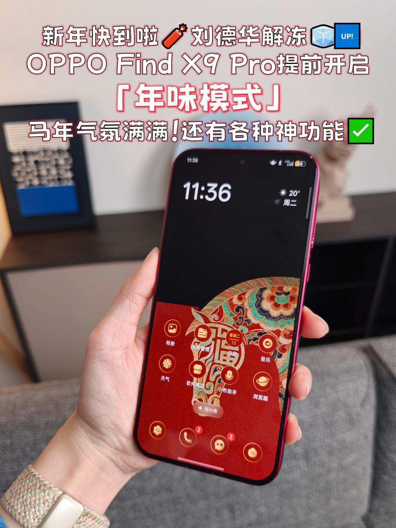 春节壁纸丨OPPO对年味的开发🪄超过200%! 新年快到啦,刘德华解冻进度➕30%,年味仪式感也得安排上! 手机当然也要换上新年主题啦~用OPPO手机的宝子选择很多,ColorOS 16好多全局主题太有感觉了 像我新换的OPPO Find X9 Pro就很不错,新年主题有全套的UI定制,马年元素满满,通知栏都有专门的适配,一键切换过年形态~🎇 而且还有不少小彩蛋,例如这个2026的烟花效果,只要跟小布说一声放烟花就行,看春晚的时候来一手这个,无门槛看~过大年~家人团圆时还能活跃下气氛🧨 日常用也挺舒服的,系统很流畅,还有不少功能我很喜欢,最近就经常用出圈实况拼图🤳🏻,这种3D感满满的实况图真的好适合发圈,到时候年夜饭也要安排上出圈实况! 还有个AI人像补光也很好用,有时候室内拍照光线不够,照片看着有点黑,直接一键就能搞定,补光还原冷白皮,拯救废片🪞 年前打算换手机的感觉真可以考虑OPPO Find X9系列哦,我是觉得挺好用的~而且近期还有国补能-500,加上限时特hui券-200,标准版3699起,Pro版4599起,还有限定礼盒送和24期免xi,还是挺香的~