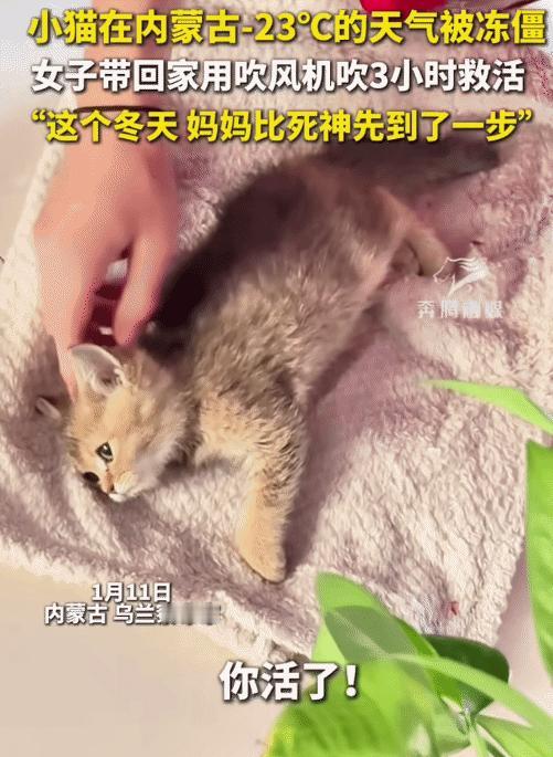 太幸运了!内蒙古乌兰察布,女子下楼突然发现一只冻硬的小猫。她把小猫带回家,先放暖和的地方,再用吹风机吹了3小时救活。 内蒙古的乌兰察布,冬天的风不仅是冷的,它带着一种清算的意味。在这个纬度,一旦太阳下山,热力学定律就会无情地向每一个碳基生物追讨热量债务。一月十一日,清晨七点的街道还是灰蒙蒙的,空气里全是冰渣子的味道。 这种极端环境下,任何掉队的生命体都会被大自然迅速“平账”。就在这残酷的背景板下,薛女士的母亲在楼下撞见了一个被系统判了死刑的小东西。那是一只在这个季节完全没有任何存活逻辑的小猫,大概只有两个月大。 它躺在那里,浑身僵硬,像一块被随手丢弃的硬邦邦的抹布。严寒已经完成了它的工作,剥夺了这具躯体里最后一点余温,把它归档为无机物。按照生存法则,这时候最理性的选择是视而不见,毕竟没人会在一笔注定亏损的坏账上追加投资。 但人类这种生物,有时候就是喜欢跟概率论对着干。薛女士的母亲弯腰把它捡了起来。这一举动,相当于单方面撕毁了大自然已经盖章生效的死亡通知书。没有任何生命体征,触手可及的只有刺骨的冰冷,这不仅是冻僵,简直就是被封印了。 把这块“冰坨子”带回家,不是什么温馨的宠物领养情节,而是一场极其凶险的抢救实验。 进门后的第一步,是对抗物理法则。她先把小猫安置在地暖最热的区域,试图利用地面的传导热来解冻。 但这还远远不够,对于一个核心温度已经跌破警戒线的生物来说,被动复温太慢了。二十分钟后,救援升级。战场转移到了家里的卫生间。这里成了临时的重症监护室,浴霸的暖风只是背景音,真正的主角是那把普通的手持吹风机。 如果你觉得这很轻松,不妨试着举着一个两三斤重的物件,保持同一个姿势哪怕十分钟。 手臂的酸痛会迅速告诉你,这是一项多么反人性的苦差事。但这台吹风机,在这个早晨整整轰鸣了三个小时。 这是一场漫长的拉锯战。热风一寸寸扫过僵硬的皮毛,强行把热能灌输进这个停摆的躯壳里。 整整一百八十分钟,用电力和人力去对抗严寒留下的绝对统治。从经济角度看,为了一个流浪的生命耗费如此巨大的精力和电费,简直是负收益的极致。 这种执拗,完全无法用常理去解释,它更像是一种对“听天由命”的激烈反叛。随着时间的流逝,奇迹并没有像电影里那样瞬间降临,而是慢吞吞地发生了。那块“石头”开始变软,四肢不再像枯树枝一样僵直。 胸腔处泛起微弱的起伏,似涟漪轻漾。这细微之动,宛如一道隐秘信号,宣告着心脏重掌身体之“权”,生命节律再度有序奏响。在这场与死神的拔河比赛里,人类这一方终于把绳子拽了回来。突然,一声极轻的动静打破了吹风机的单调噪音。 “喵。”这声音弱得像蚊子哼哼,但在那个封闭的卫生间里,却比任何交响乐都要震撼。这一声动静,宣告了之前所有的辛苦投入,都在这一刻实现了回本,甚至是暴利它活了。 不是因为运气好,而是因为有人不愿意让它死。薛女士一家看着这个起死回生的小家伙,反应却出奇的平淡。没有痛哭流涕,也没有那种自我感动的宣泄,只是简单确认了这个事实。这种平静背后,是对生命最深沉的敬畏救它,是因为想救,仅此而已。 那只在鬼门关转了一圈的小猫,此刻正瘫软在温暖的毛毯里,眼神迷离。它可能永远无法理解这几个小时里发生了什么。它只知道,原本那个要把自己吞噬掉的寒冷世界,突然变成了一双温暖的手和一股源源不断的热风。 在这个宏大的世界棋盘上,一只猫的生死存亡,微不足道到连一颗尘埃都算不上。但在那个清晨的乌兰察布,在那个普通人家的卫生间里,这一场关于生命的逆袭,却赢得了满堂彩。 所谓善意,恰似在明知不可为的荆棘之途毅然前行。它不顾前路艰难险阻、结果凶多吉少,仍决然践行,这或许才是善意最动人的诠释。 不计成本,不问前程,只为了那个万分之一的可能性,硬刚到底。这只小猫是幸运的,它遇到了那个愿意为它停下脚步、愿意为它手酸三个小时的人。而对于薛女士的母亲来说,这只不过是再一次证明了,人心里的那团火,有时候真的能融化坚冰。 这个冬天依然寒冷,风依然刺骨。但在那个小小的角落里,因为一个看似鲁莽的决定,春天提前到了。 (来源: 奔腾融媒)