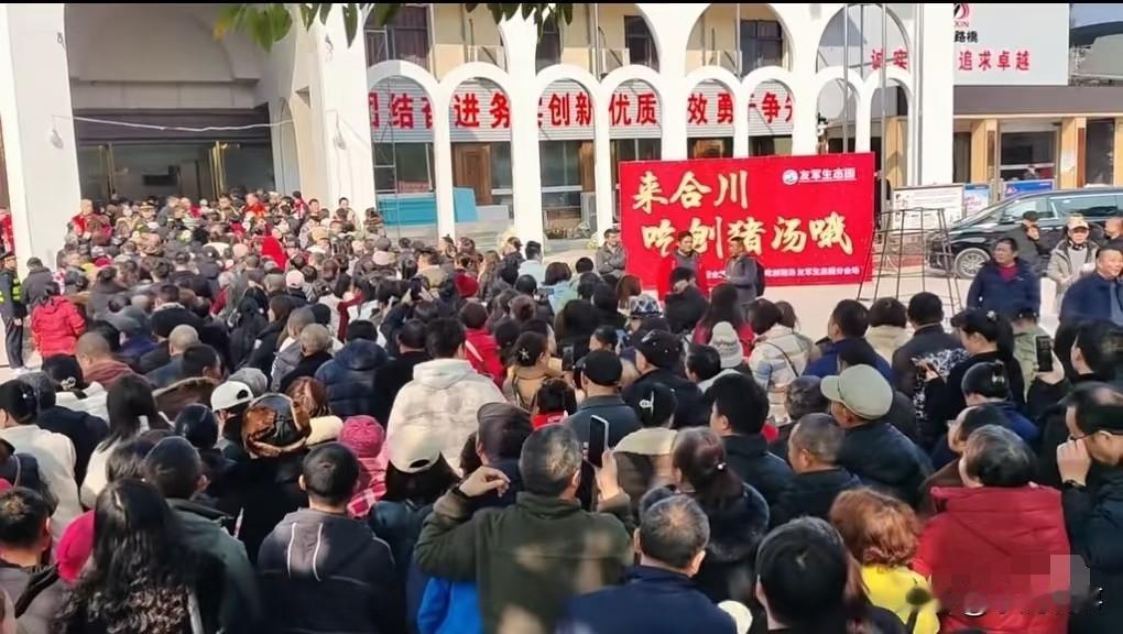 合川文旅这回是真的赢麻了! 有网友算了笔账,全是实打实的收益。 呆呆家杀猪饭当天来了四千多人,高峰期就超三千人,大家来这不光吃刨猪汤,还顺带住酒店、给车加油,逛钓鱼城景区、买桃片特产。这波直接让合川城区酒店订单涨了300%,特产销量翻倍,钓鱼城预约量也涨了300%,周边村镇的餐饮、住宿全被盘活了。 更关键的是,文旅没花一分钱宣传费,就靠这场民间杀猪饭火遍全网,比花几百万搭场子做推广管用多了。现在文旅也官宣了,要把刨猪汤做成民俗文化季,一直办到正月十五,还打算打造年度杀猪节IP,就是不再在呆呆家办,分散到各个农家乐,避免人太多挤不动。 这事儿真的是个奇迹!网友有闲有钱,跨省开十几个小时车都要来;当地文旅和政府反应快,凌晨就来帮忙保障;接待能力也超牛,几千人的宴席愣是安排得明明白白。一个农村姑娘带火一座城,这波效应是真的太顶了!