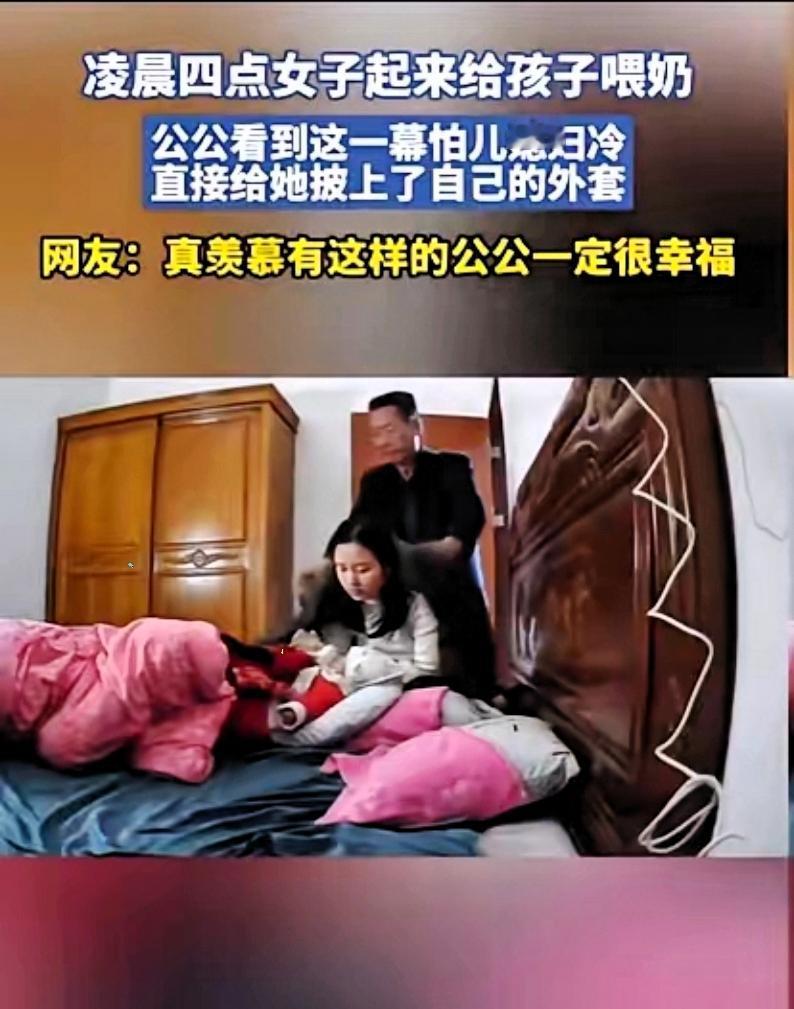 泪目!广东一女子凌晨4点,起来给孩子喂奶,没想到,公公竟然走到她身后,将自己外套脱下,披在女子身上,女子连忙说不要,公公却没有多说什么,仍然将外套按在她身上,随后转身离开回屋去了。 这个点本是哺乳期妈妈最崩溃的时刻,睡眠被切碎、体温跌到低谷,独自扛着育儿的疲惫与孤独,多少家庭里妈妈都是这样"单兵作战",委屈悄悄攒成隐形矛盾。但这位公公太懂家庭相处的核心:不用白天说漂亮话,只在最脆弱的时刻递上实在关怀。他没说教、没邀功,披完外套只说"夜里凉",便轻轻转身离开,不添一丝尴尬与压力。这哪是一件外套啊,是把儿媳当家人的真心,是化解家庭内耗的智慧。 都说公媳关系难相处,其实好的家风从不是刻意讨好,而是这种无声的体谅与兜底。比起昂贵补品,这种被看见、被心疼的温暖,才是治愈妈妈疲惫的最好良药,也给所有家庭成员上了生动一课!神仙公公 育儿路上的温暖