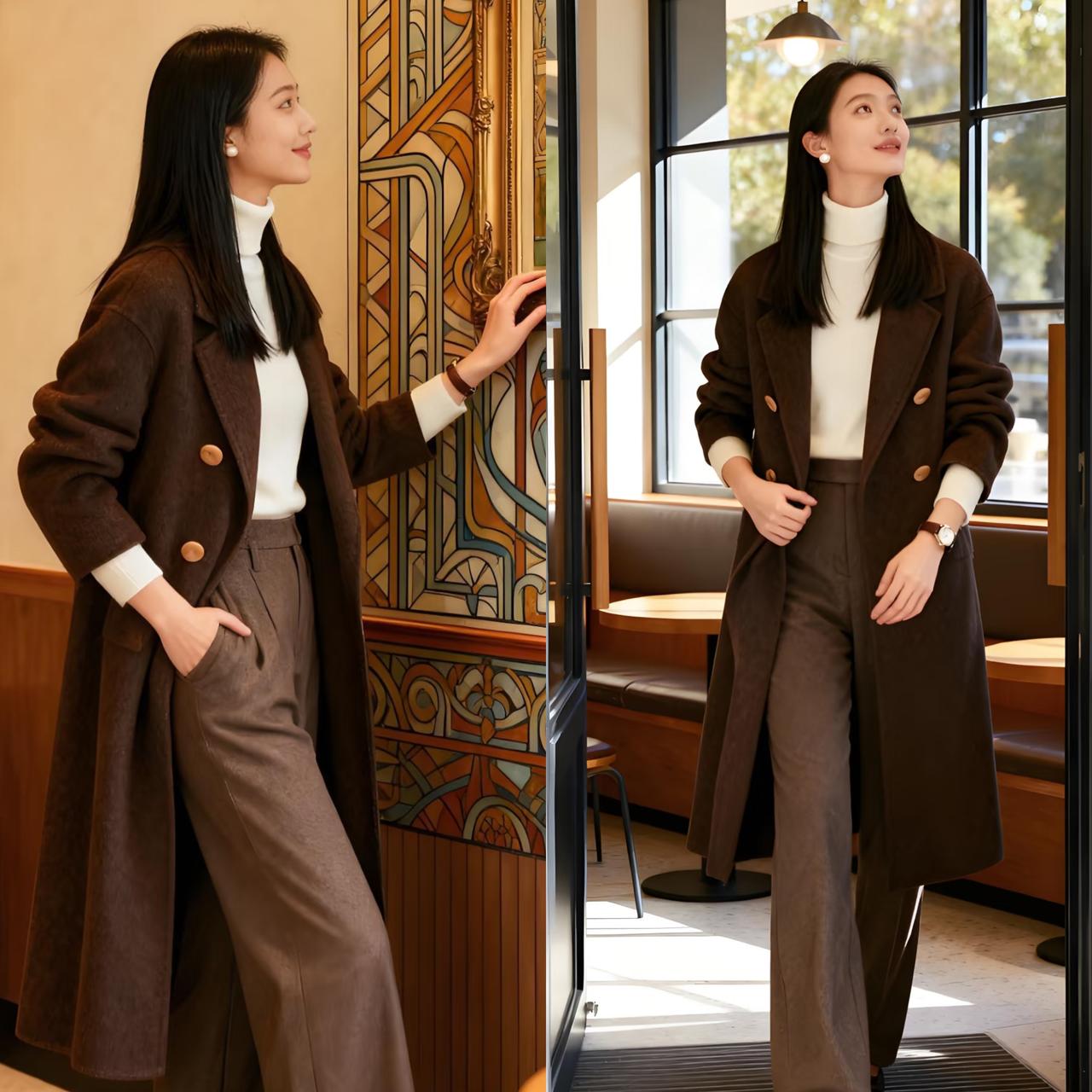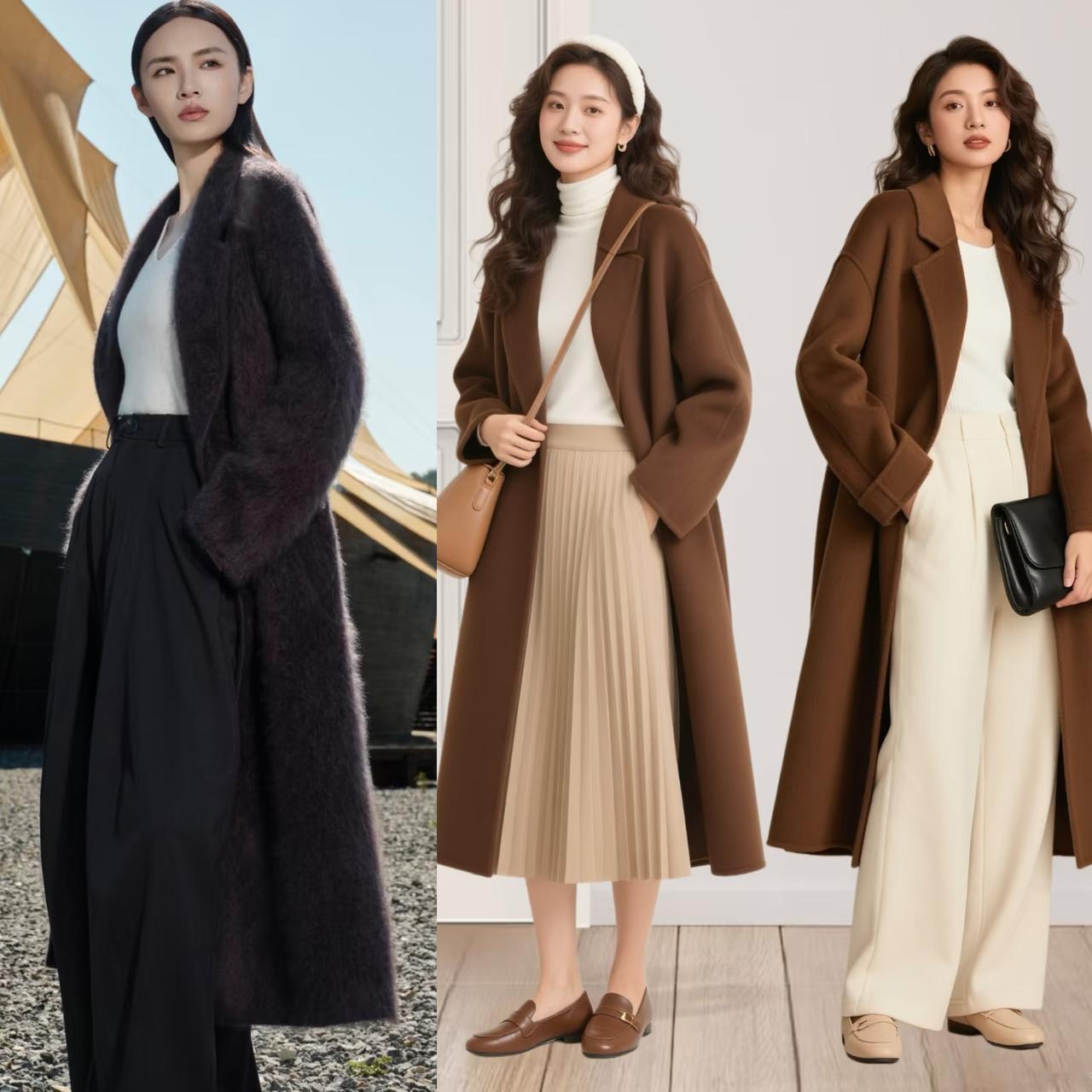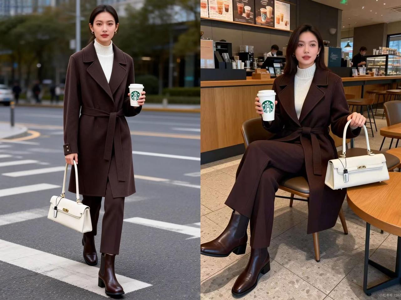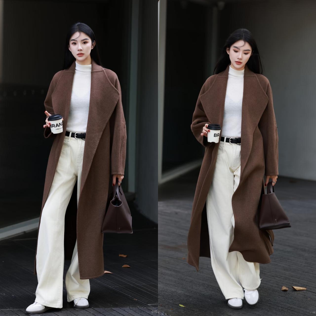 冬季穿咖色大衣总担心显沉闷老气,其实只要选择白色单品搭配,就能轻松打破沉闷感,穿