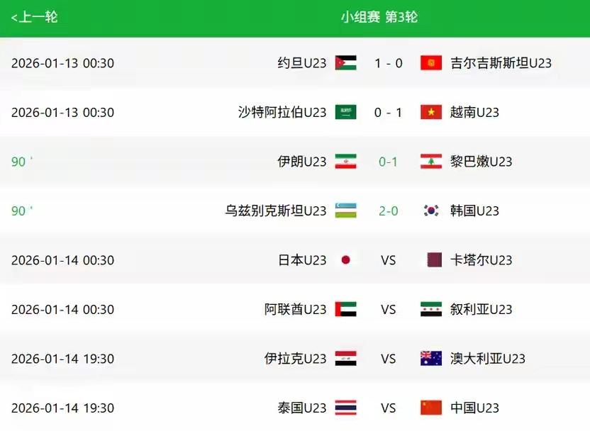 中国U23拿下泰国8强就可以打韩国了,最新乌兹别克斯坦U23队2比0胜韩国,乌兹别克斯坦第一名出线,韩国第二名出线,伊朗爆冷0比1输黎巴嫩,双双出局,伊朗积2分小组垫底,西亚球队这次亚洲杯基本上被灭完了。 中国队可以选择对手了,中国拿下泰国就是小组第一名,就可以打韩国,如果是小组第二名就是对乌兹别克斯坦,乌兹别克斯坦实力还是比韩国强,中国队还是打韩国最好,所以中国队必须争取拿下泰国,不能只想保平争胜,只要平不一定能平,争取小组第一名出线。 安东尼奥这支中国U23完全不怵韩国,去年中国U23和这支韩国U23曾2次交手,中国队2连胜,1. 2025年3月友谊赛:中国1-0韩国;1月熊猫杯中国2-0韩国,中国U23曾两次击败韩国U23,这就是韩国媒体担心遇到中国队的原因,中国队在亚洲杯复仇韩国才解气,堂堂正正赢韩国,淘汰它,让韩国输得心服口服,相信这也是广大球迷最乐意看到的,让我们明晚一起为中国队加油!