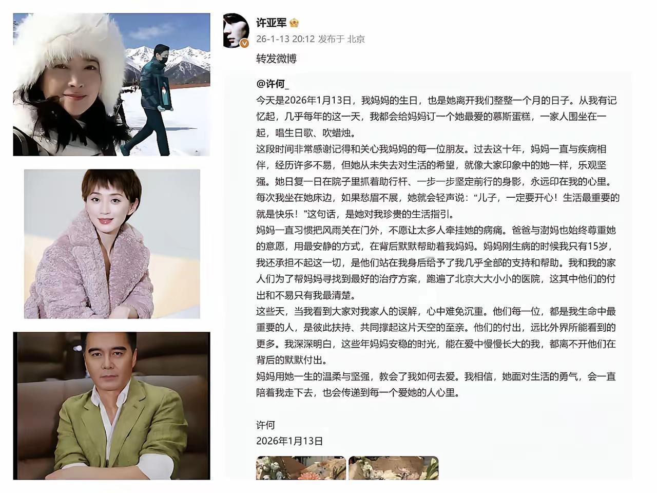 许何的信, 终于说明白许亚军为何没有送何晴, 不是许亚军薄情,也不是张澍不让去,而是因为他们尊重何晴的想法。 许何特意提了妈妈何晴骨子里特别要强,宁愿自己扛下所有伤痛,也不想麻烦身边的亲人,许亚军和张澍就尊重她的体面,不打扰不纠缠,默默守着她的心愿,这份分寸感不是谁都能做到的。 别觉得许亚军和张澍没露面就是不管,他们早就默默行动了,为了给何晴治病,跑遍北京各大医院求医问药,只是没声张不想让人知道而已。 之前多少人吐槽许亚军冷血,还猜是张澍阻拦不让去,这下真相大白,所有误解都烟消云散,原来他们一直都在按何晴的心愿做事。
