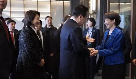 高市早苗诡异而谄媚迎接李在明。 李在明到访日本,高市早苗表现的更加谄媚,主动到李在明居住的宾馆迎接,脸上露出她那标志性的媚笑。看着有点恶心,缺乏稳重,还有点诡异。
