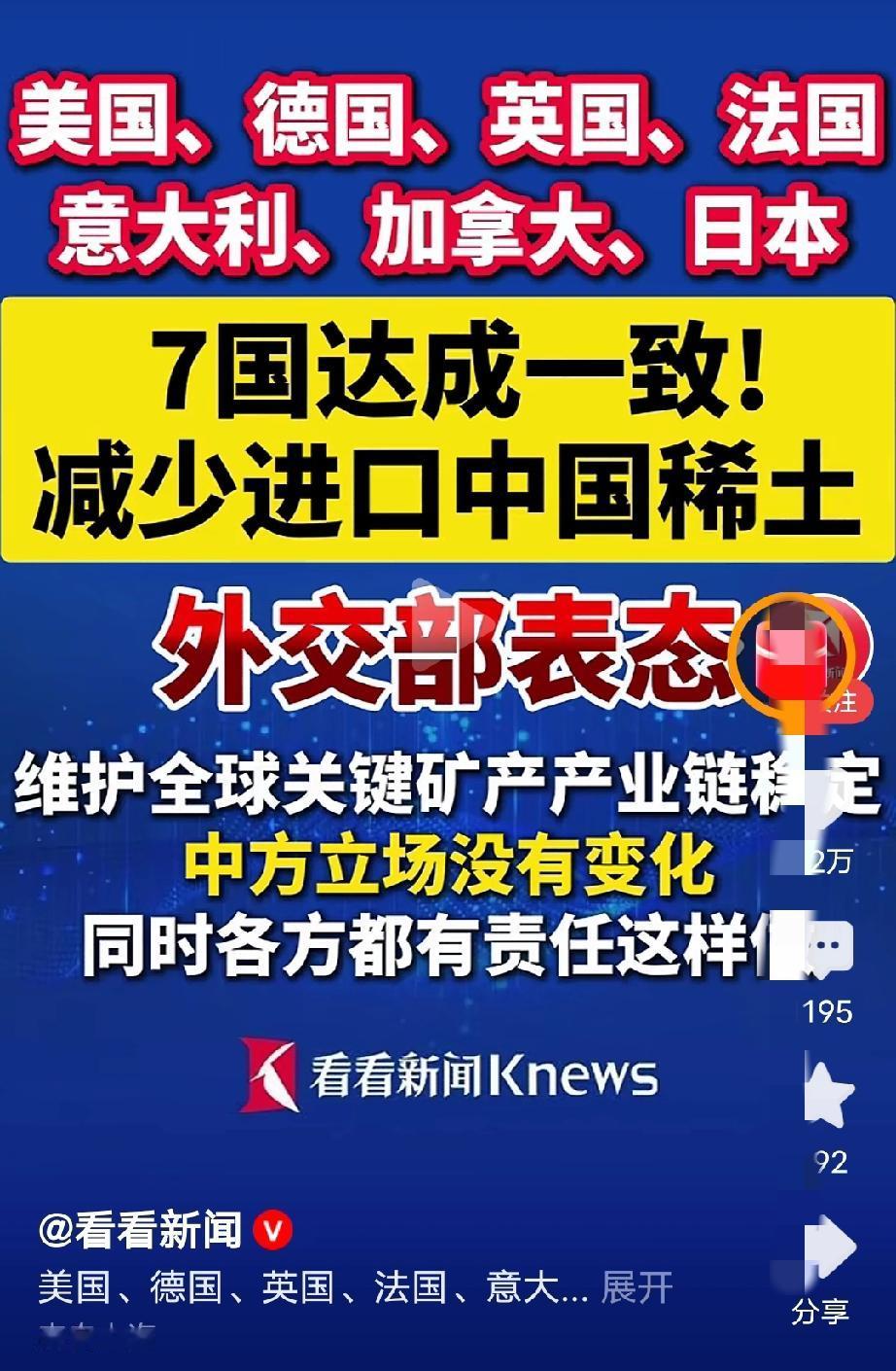 七国集团要一致减少进口中国稀土,那就如他们所愿,一克也不买给他们了[祈祷][祈祷][祈祷]