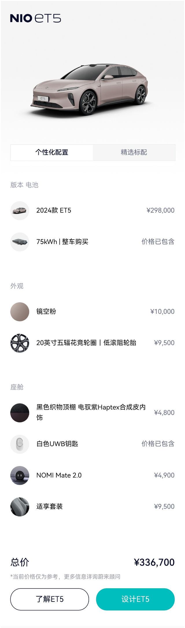 一年多的ET5选配近4万还能值多少钱 一年多三个月,蔚来ET5,镜空粉1万/电驭