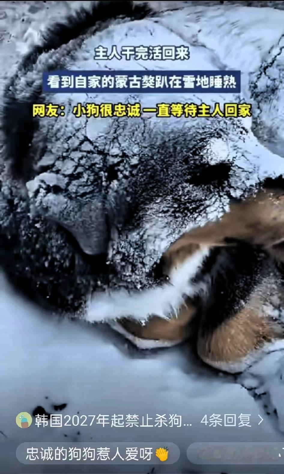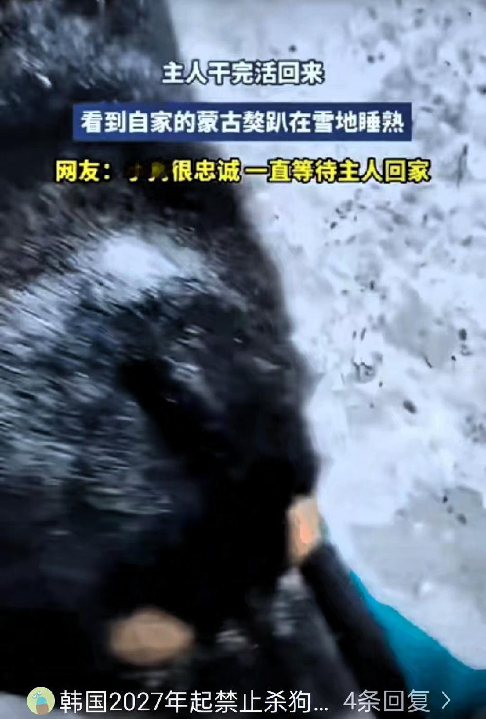 “泪目了!”内蒙古的一场大雪里,藏着一只蒙古獒最戳人的忠诚,看完心里满是暖意。 王女士干完一天农活,拖着疲惫的身躯往家赶。天色早就暗了下来,天空中飘着雪花,寒风刮得人脖子发凉,地上积了厚厚一层雪,踩上去咯吱作响。她下意识紧了紧围巾,心里还惦记着家里的蒙古獒,往常只要她走近家门,那家伙早就摇着尾巴飞奔过来,围着她转圈圈撒娇了。 可今天走了老远,都没看到那熟悉的身影。王女士心里嘀咕,这么冷的天,小家伙肯定躲在暖和的屋里,懒得出来迎接了,毕竟换谁也不愿在冰天雪地里待着。 可刚走到家门口,她就瞥见雪地里蜷缩着一团黑乎乎的东西,心里咯噔一下,赶紧快步走近。看清的那一刻,王女士瞬间红了眼眶,那正是她家的蒙古獒!狗狗身上盖着一层厚厚的积雪,只露出一小撮黑毛,一动不动地趴在那里,显然是在雪地里守了太久,等着等着就睡着了。 王女士又心疼又感动,赶紧蹲下身轻轻叫醒狗狗。狗狗迷迷糊糊抬起头,看清是主人后,立马来了精神,嗖地一下站起来,使劲抖落满身的积雪,兴奋地往王女士身上蹭,尾巴摇得像个小马达,嘴里还发出呜呜的撒娇声。 王女士连忙伸手拍掉狗狗身上残留的雪,把冻得冰凉的小家伙搂在怀里。都说蒙古獒一生只认一个主人,这话真的一点不假。它们不会说动听的话,却会用最执着的行动,默默守护着主人。这份纯粹的忠诚,比任何甜言蜜语都让人动容。