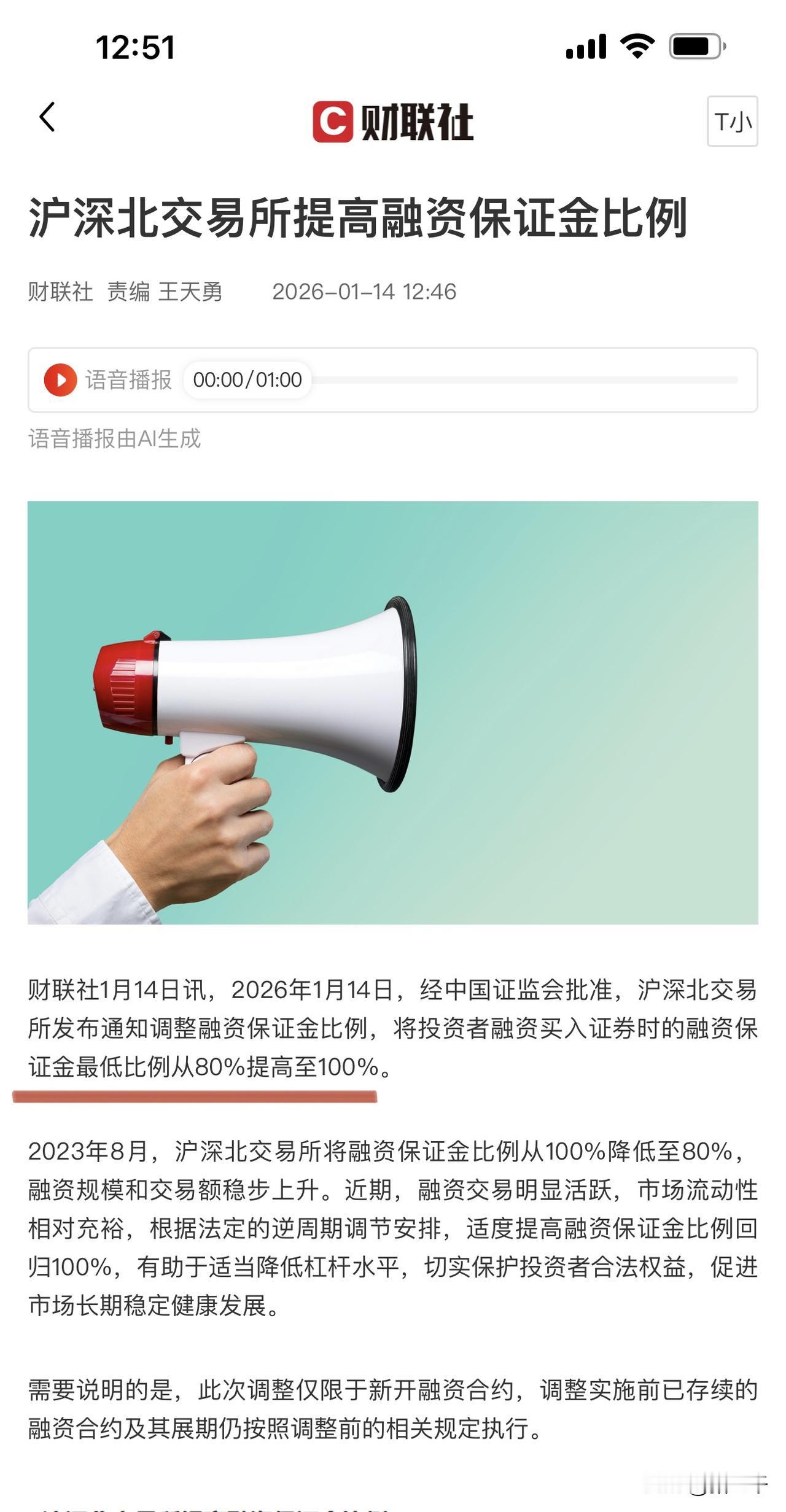 突发!股市情绪过热紧急降温! 沪深北交所融资保证金比例80%调回100%! 午后开盘必然有一番剧烈的龙争虎斗, 特别是高标融资盘股, 会有明显的抛售动作追加保证金。 下午银行有望止跌回升, 周五是股指期货交割, 1月以来指数合约开始出现做多方盈利, 也就是市场空头在消失, 这一现象不是很美妙, 极易导致指数短期过快上涨引发泡沫后的股灾! 情绪紧急降温是好事…