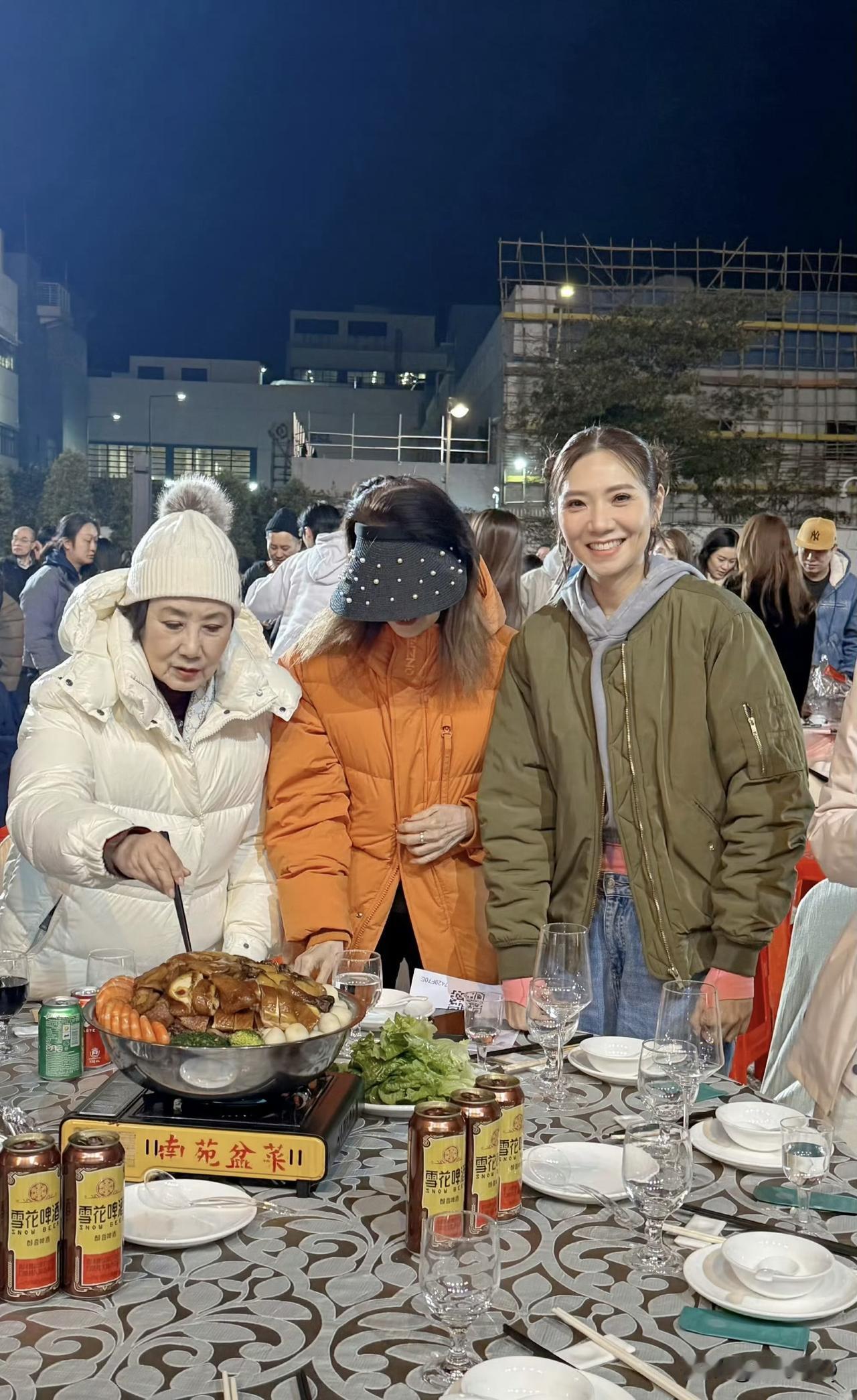 TVB的年会聚餐真的挺节省,这么冷的天在户外办酒席,连棚子也不搭,害得明星们冻得