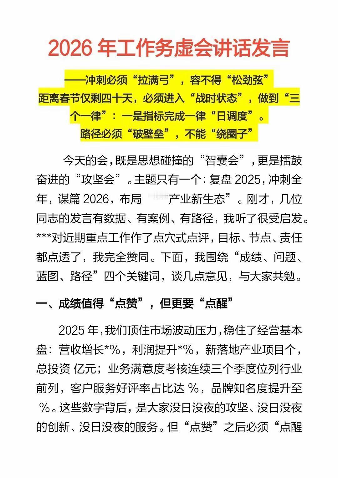 2026年工作务虚会讲话发言