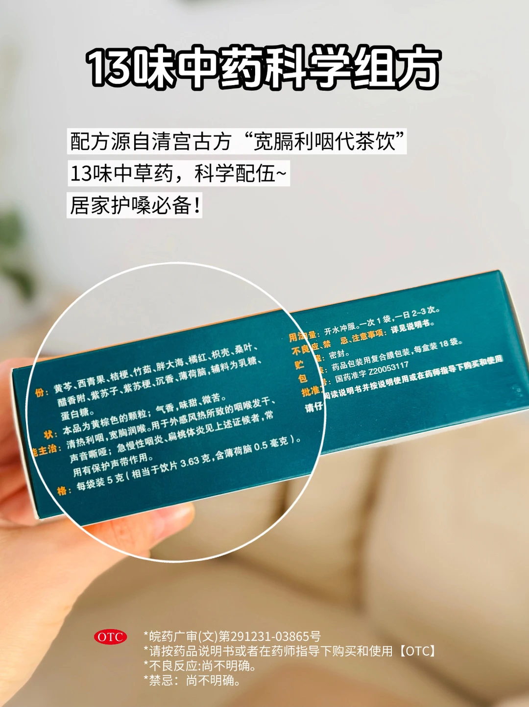 毕竟是37年专注咽喉健康的大品牌,用着超放心~配方源自清宫古方“宽膈利咽代茶饮”,里面有黄芩、西青果、桔梗等13味中草药🌿,清热利咽,不管是慢性咽炎反复,还是急性咽炎发作都能用!