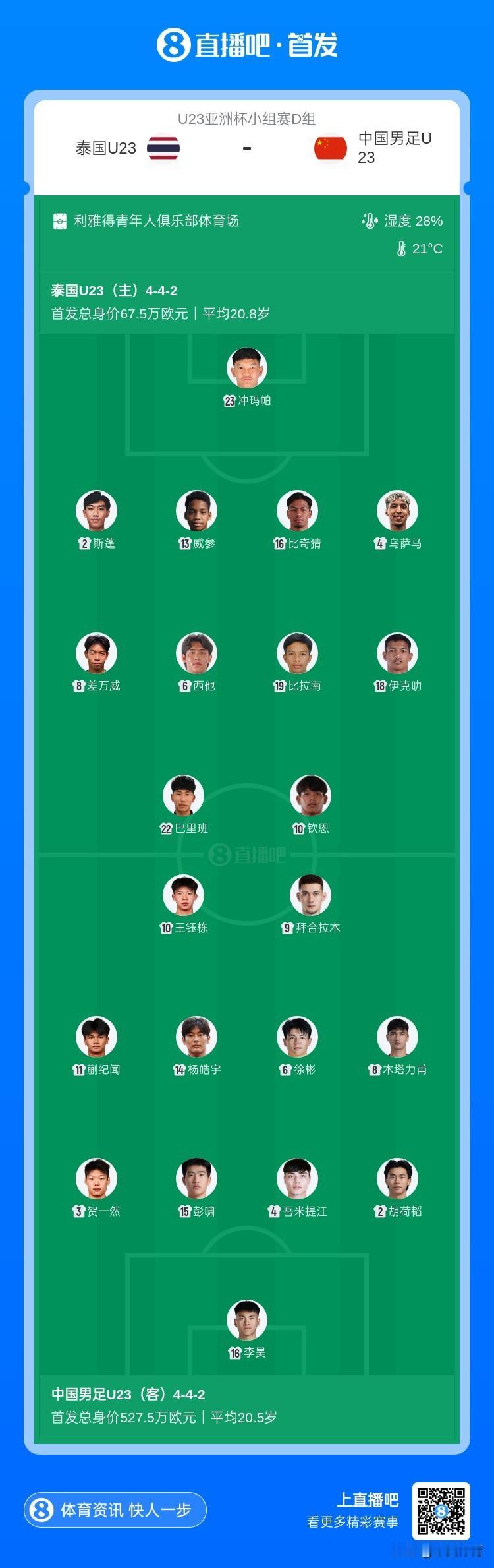 今晚19点30分,中国U23将迎来本次亚洲杯小组赛的最后一个对手泰国U23国足! 今晚的首发阵容已经出炉,众人期待的蒯纪闻终于首发出场,但是,后防中坚,球队队长刘浩帆依然高挂免战牌!彭啸,吾米提江依然首发出场!看来,主帅安东尼奥还是力争稳固防守,伺机利用蒯纪闻的组织,王钰栋的突破,拜合拉木的抢点!给泰国强力的压迫感!力争拿下泰国,强势出线!中国队的具体首发名单如下! 门将 李昊 后卫 胡荷滔 吾米提江 彭啸 贺一然 中场 蒯纪闻 徐彬 杨皓宇 木塔力甫 前锋 王钰栋 拜合拉木! 大家觉得,中国队能够力克泰国,强势闯进U23亚洲杯八强吗?!王钰栋能打进亚洲杯决赛圈首球吗?