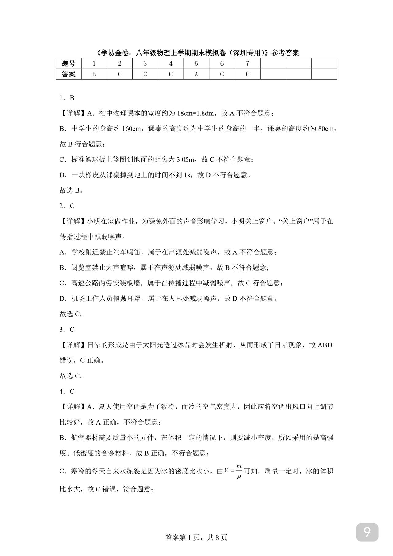 初二上册物理期末试卷 备考期末了 含详细答案解析 初中《期末冲刺大小卷》2025新初一初二精准考点全科提分期末总复习