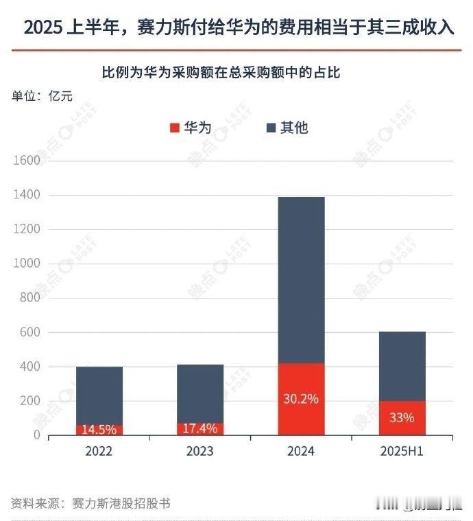 赛力斯给华为打工啊,三分之一的东西都是问华为采购的。 赛力斯 24 年全年向华为采购额 420 亿,25 年上半年 200 亿。按照问界销量(24 年 38.8 万,25 年 H1 15.19 万)计算,每台车采购额分别是 10.8 万、13.18 万。 一台车也就是卖个20-50万,这么看赛力斯真的就是给华为打工。