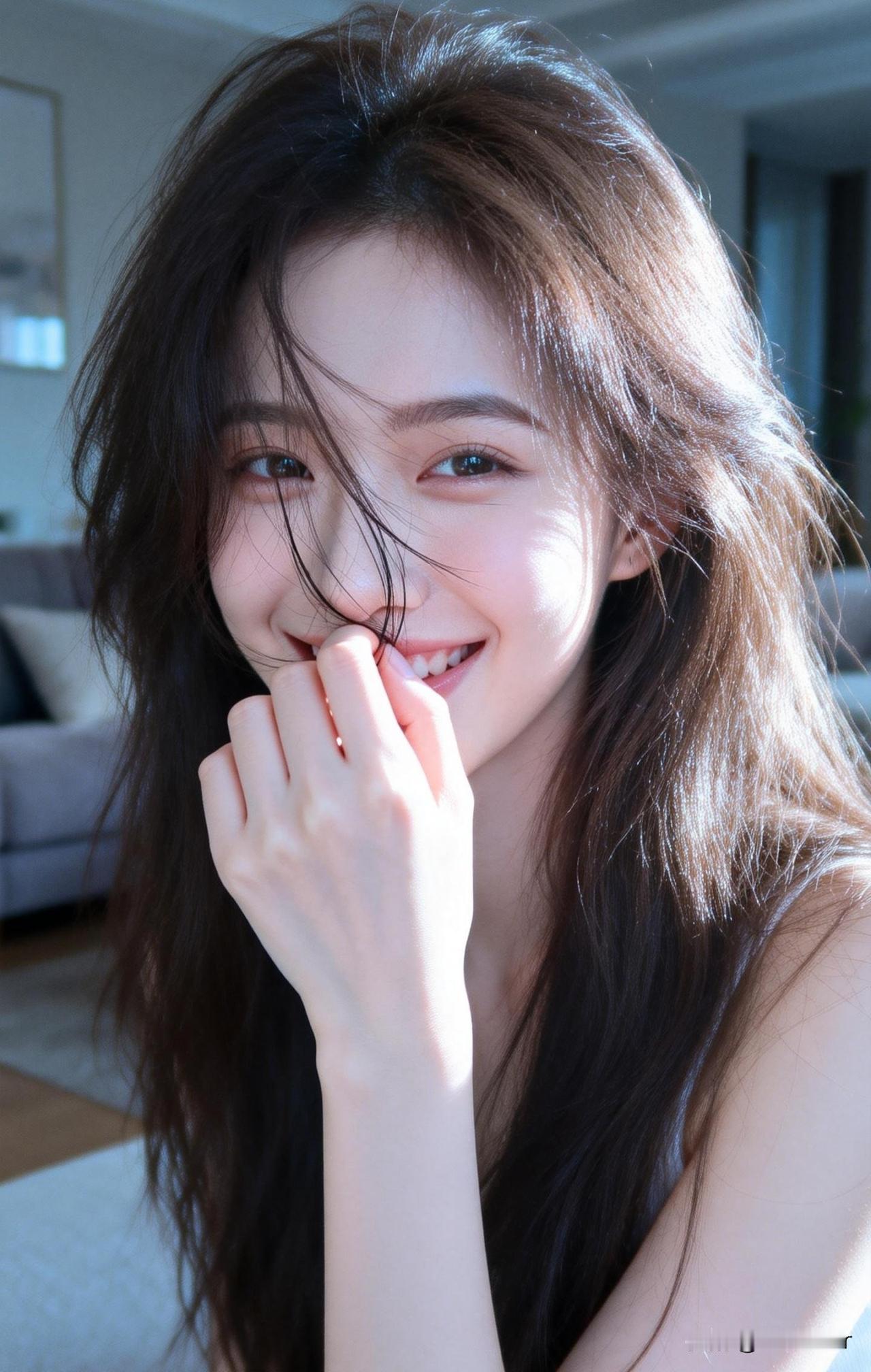 窗前美人倚,发丝如墨流。