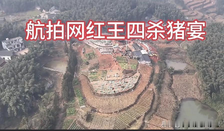 网红农村四哥家学合川呆呆办刨猪汤宴,网友用无人机拍摄了他周边的景观,我一看这王四家的地形真的绝了,依山傍水的,我不懂风水学,但知道住在这里空气肯定好,周边全是竹林,而且这耕地多,这绝对是个养老的好地方,可以自给自足,逍遥自在。
