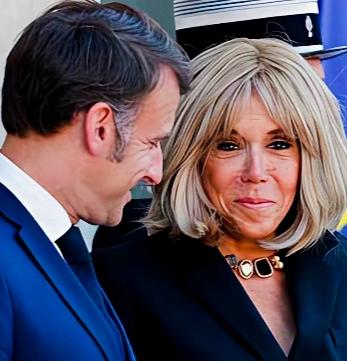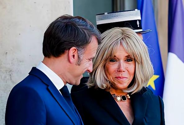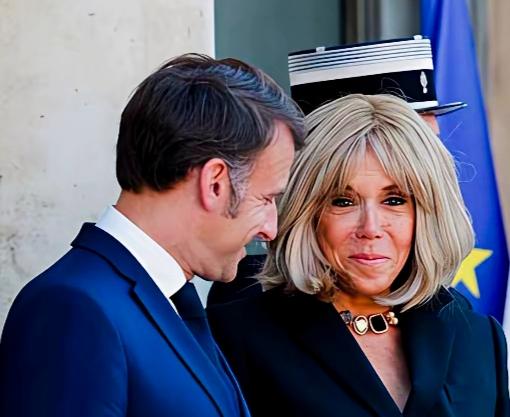 马克龙妻子布丽吉特脖子上戴的是什么装饰品呢? 看上去有别于普通项链啊!挺独特啊! 布丽吉特脸上的表情也挺有特点,似笑非笑的样子啊! 马克龙笑容满面的在思考什么问题呢?