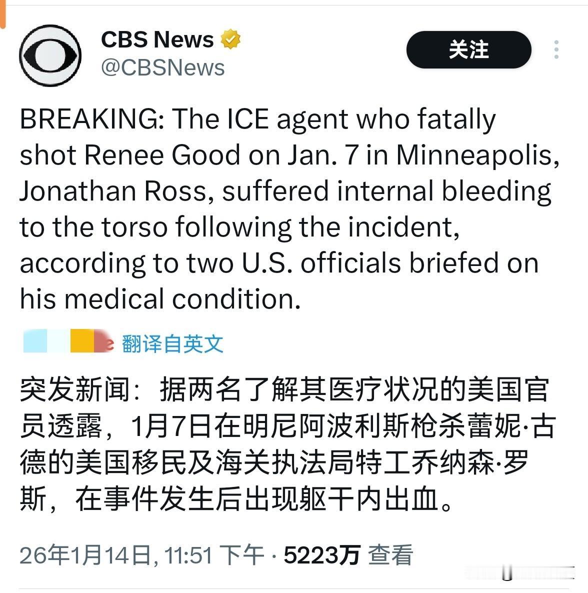 ICE在美国真的可以为所欲为[震惊] 美国主流媒体已下场,直接假新闻编好扔给所有美国人:ICE探员罗斯,朝白人女司机脸上射击三发子弹后,自己也躯干内出血(暗示遭到对方车辆撞击)。 然而当时多个角度的视频都显示,车辆根本没有碰到也物理上很难碰到罗斯。 可主流美媒这么一下场,就给判了冤魂古德小姐一个【罪有应得】。这也将为ICE在全美的无所顾忌彻底铺平道路。