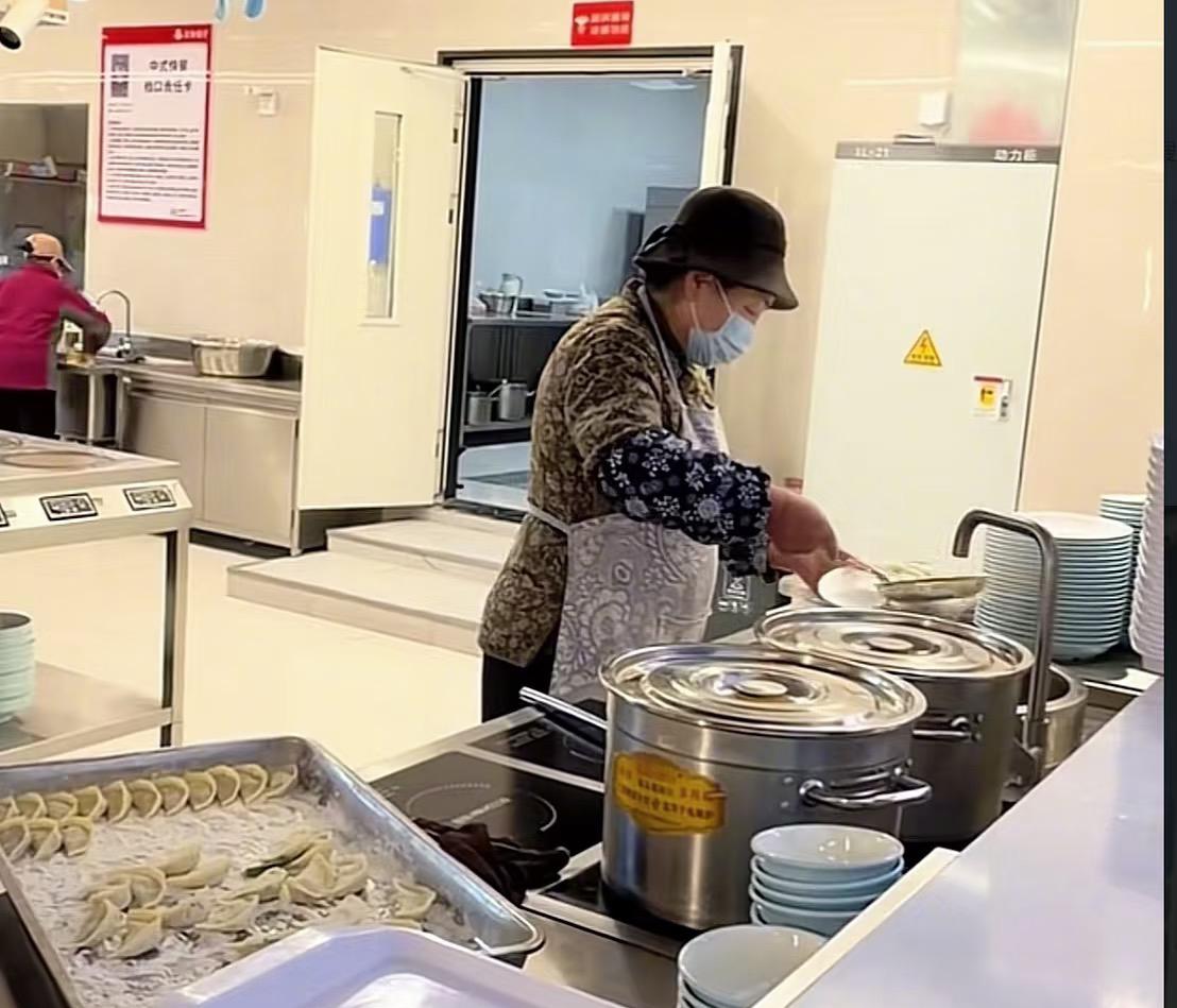 刘强东的妈妈真的太朴实了,儿子可是亿万富翁,本应该在家里享清福,打打牌搓麻将,非得要出来打工。 现在阿姨在京东宿迁食堂打工,给员工亲自下饺子,而且阿姨可不是三天打鱼,两天晒网,基本上是全年无休,只要公司有人,她都会来。 看这穿衣打扮,阿姨也是低调到骨子里,袖口的套袖简直太接地气。 不过我要是京东的员工,我还真不好意让阿姨给我服务,毕竟这可是正儿八经的“老佛爷”。 。