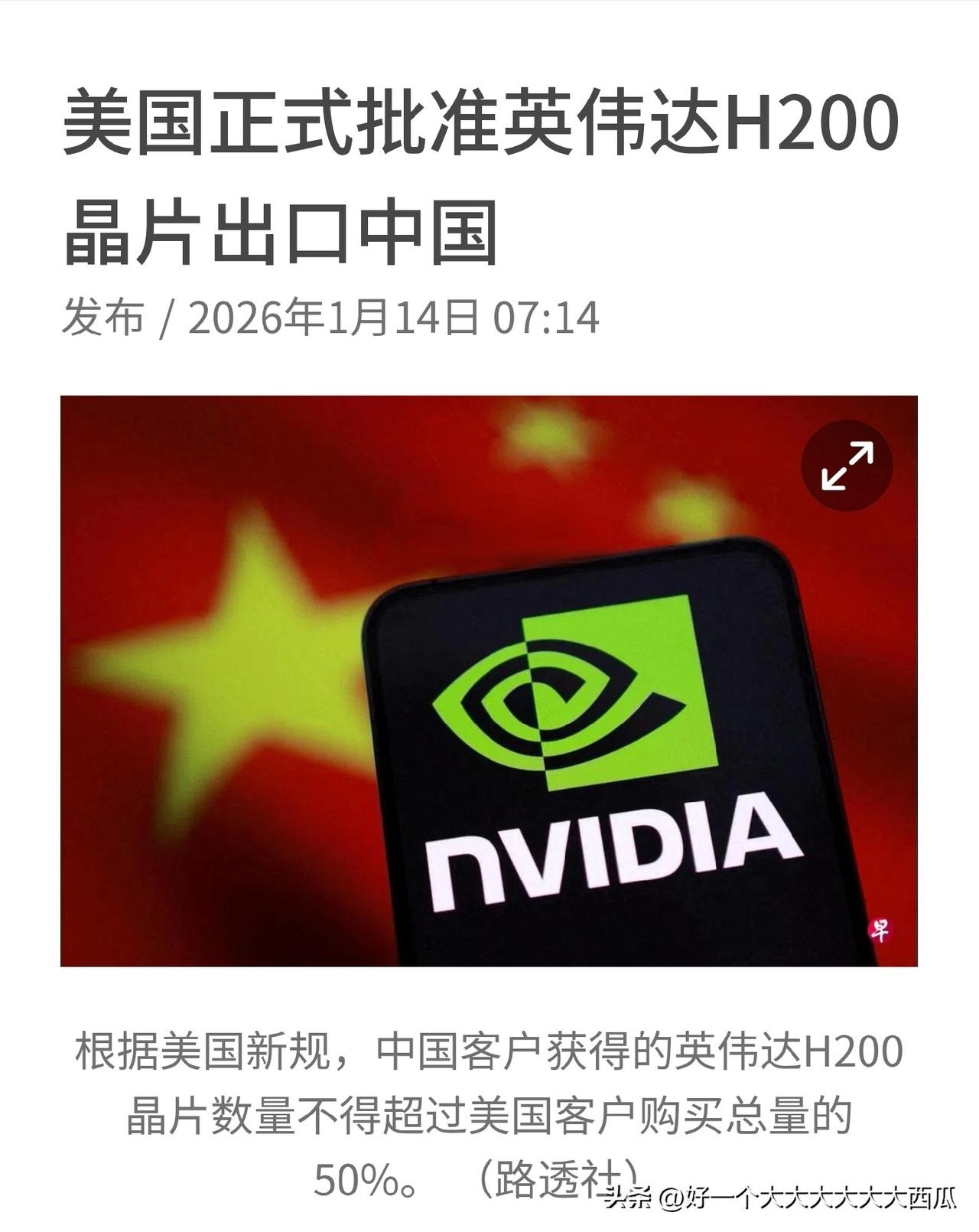 美国政府近日正式批准英伟达H200人工智能芯片对华出口, 但是设定了很多限制条件, 比如25%销售分成、技术代差保留及严格审查等, 其实这些感觉都是摆在明面上的东西, 最怕的还是在芯片里面设了后门, 到时候你的一举一动都在美国的掌握之下了。 所以非必要真的不要去采购英伟达人工智能芯片, 至少是重要关键的人工智能项目不要采用英伟达。