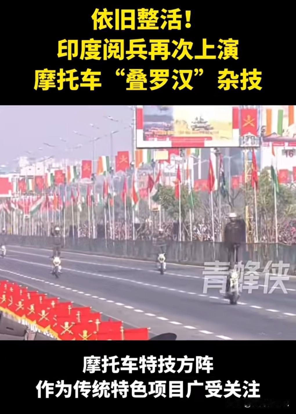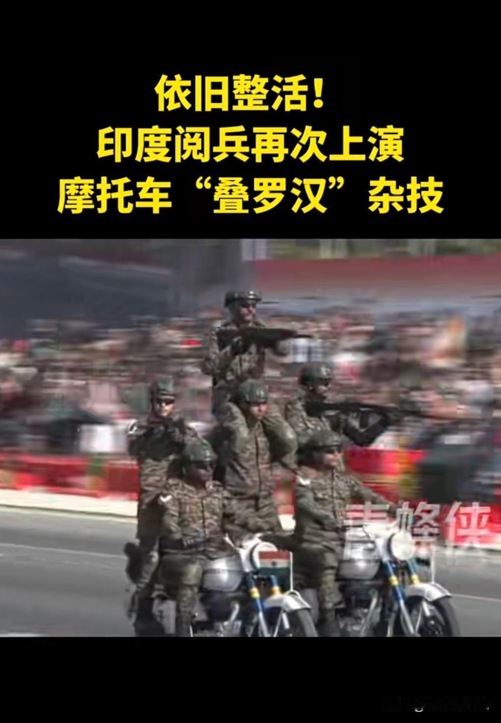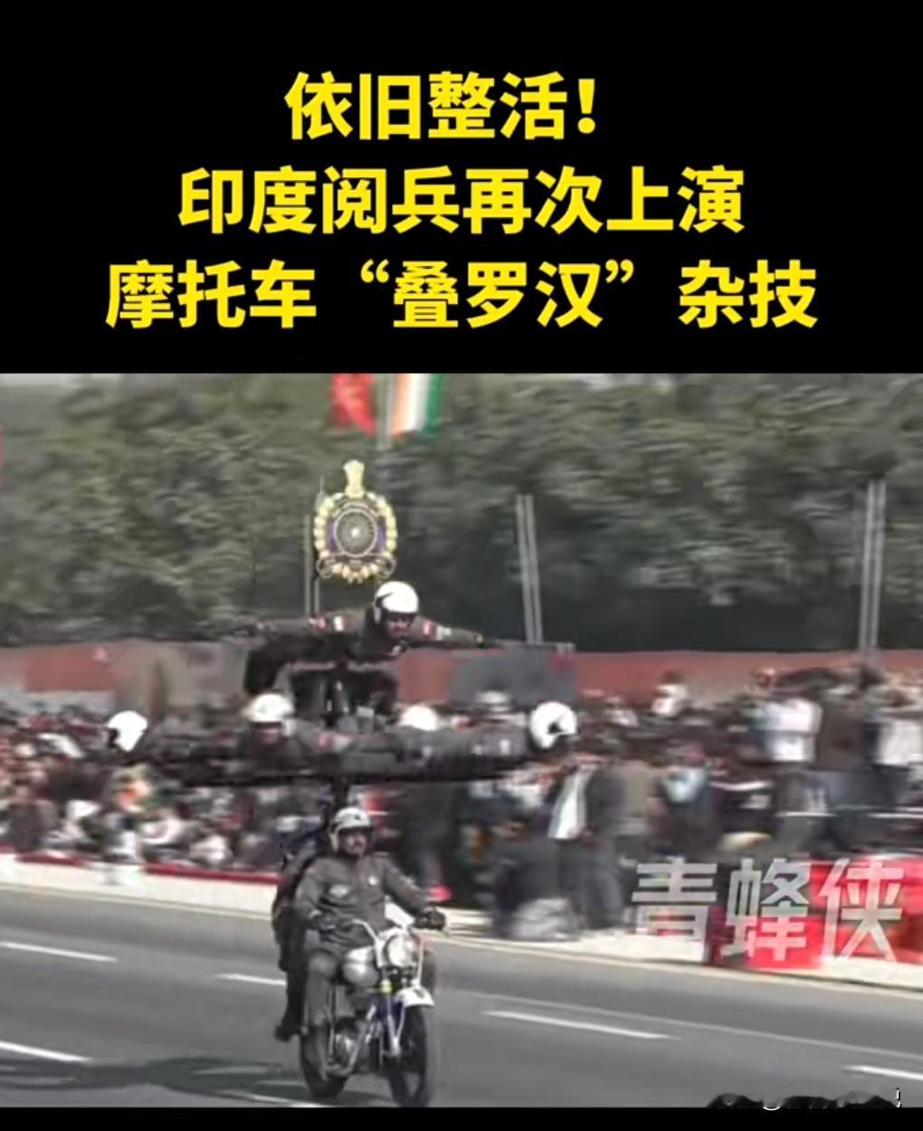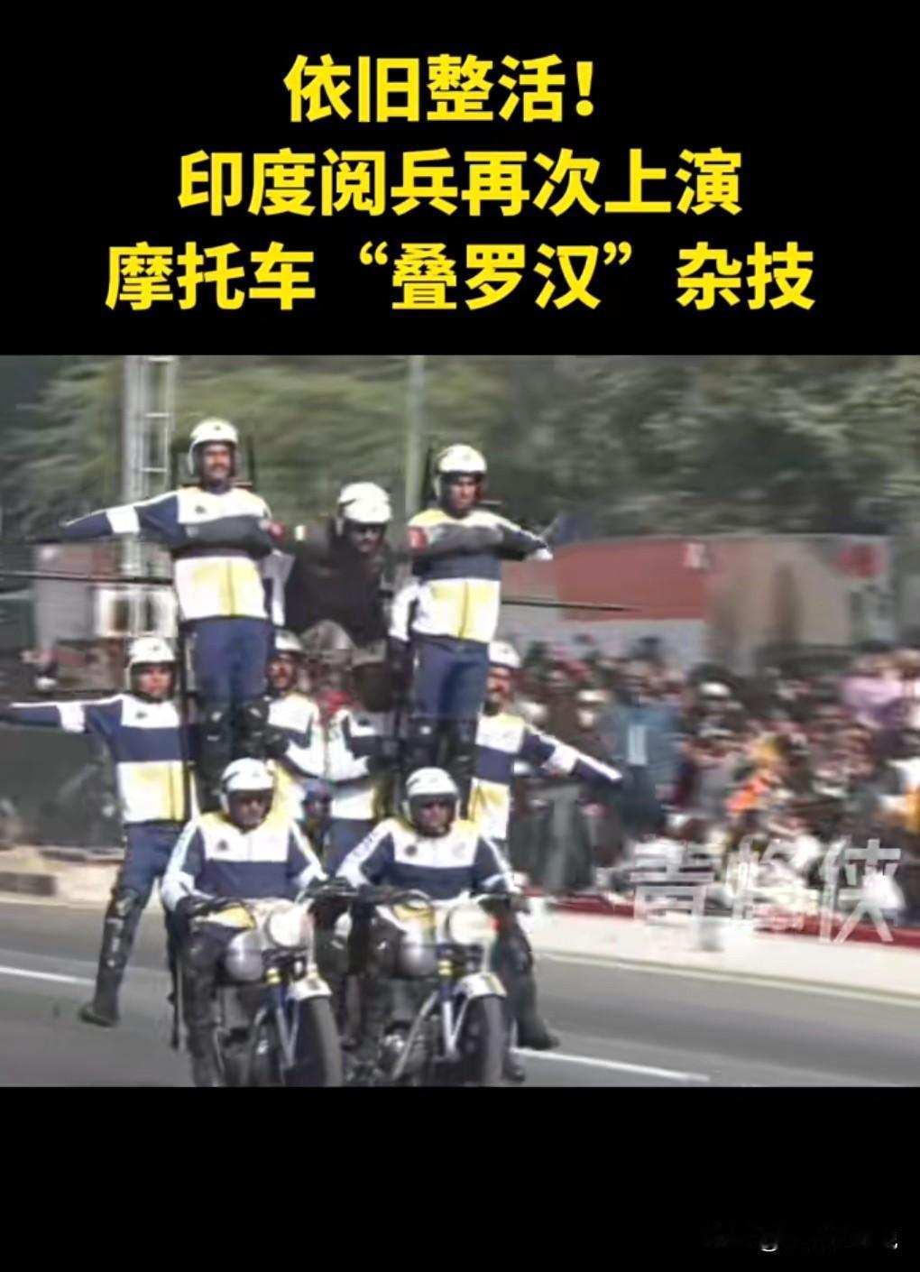 印度真的是一个神奇的国家,经常动不动就在阅兵式上危险驾驶。 那个摩托车的项目倍受关注啊。 1月15日,印度阅兵再次上演摩托车“叠罗汉”。 虽说是危险驾驶,但是印度老百姓就爱看这个。 确实非常的壮观啊,那么多人叠罗汉。