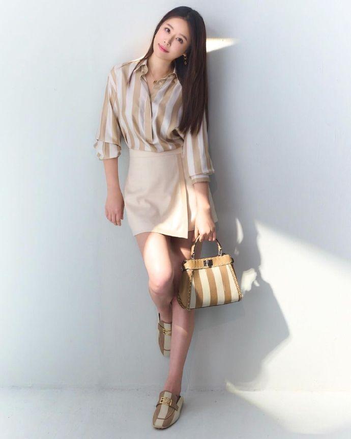 “小香风+条纹袜”,精致优雅,时髦又气质