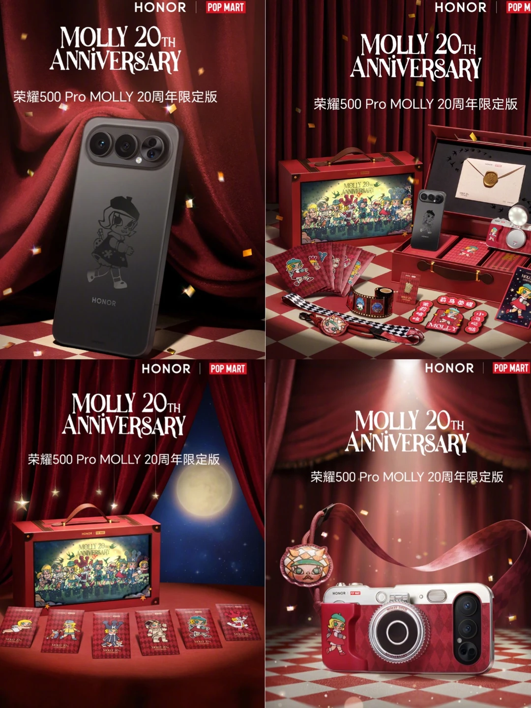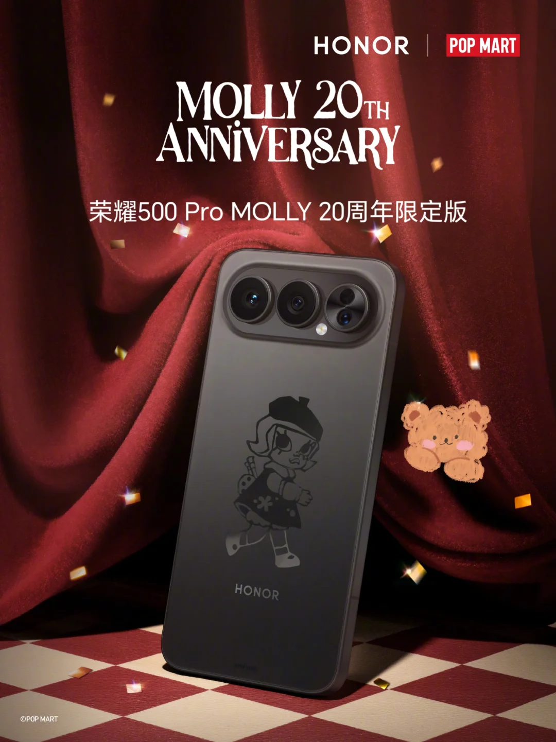 没想到荣耀也会和泡泡玛特联名啊,联名手机是荣耀500Pro,这个联名还是很走心,有ccd相机,好多小卡,一些不知道是什么,但看起来很精致,手机后盖有Molly图案,你们觉得怎么样?
