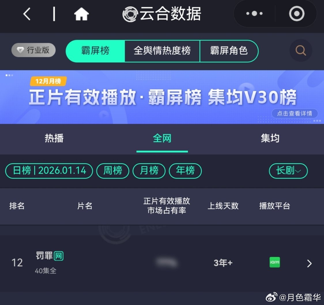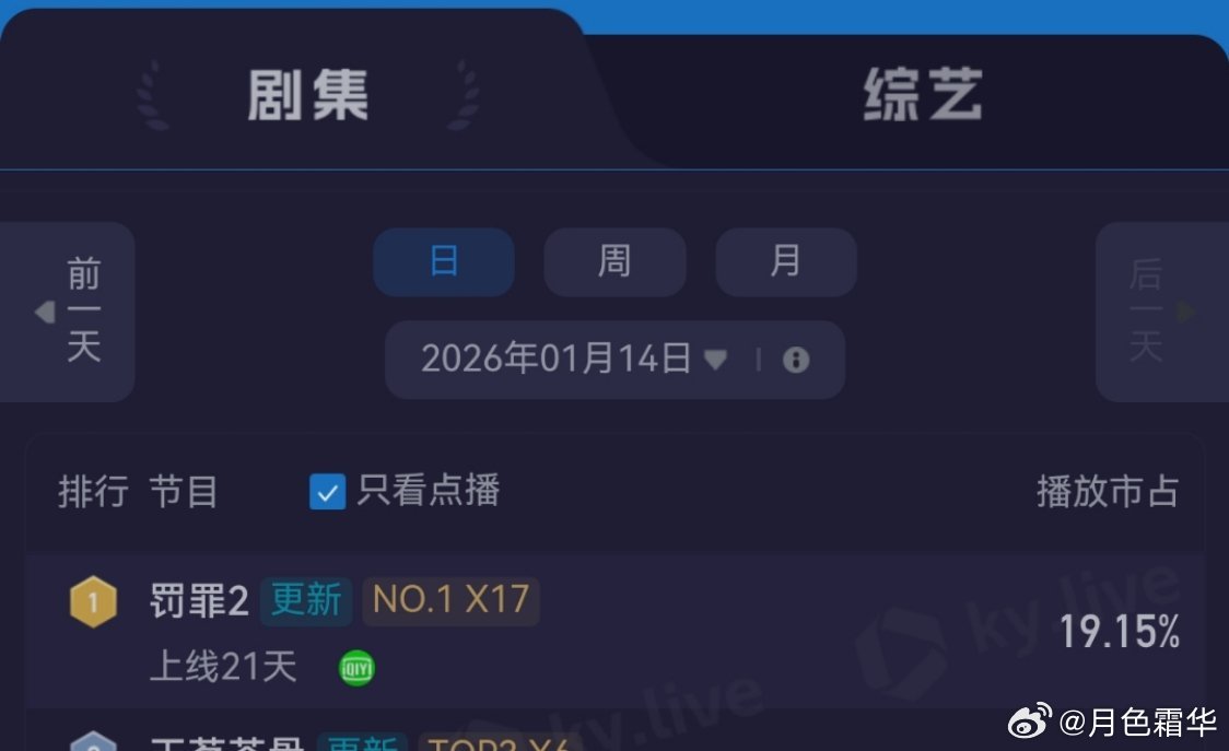 1月14日,罚罪2恢复更新第一天罚罪2云合第一占比逆跌!罚罪2酷云点播第一罚罪2灯塔第一。罚罪,云合第12,《冬至》云合网剧第23。今天更新38,还有3天完结! 黄景瑜秦枫黄景瑜罚罪2