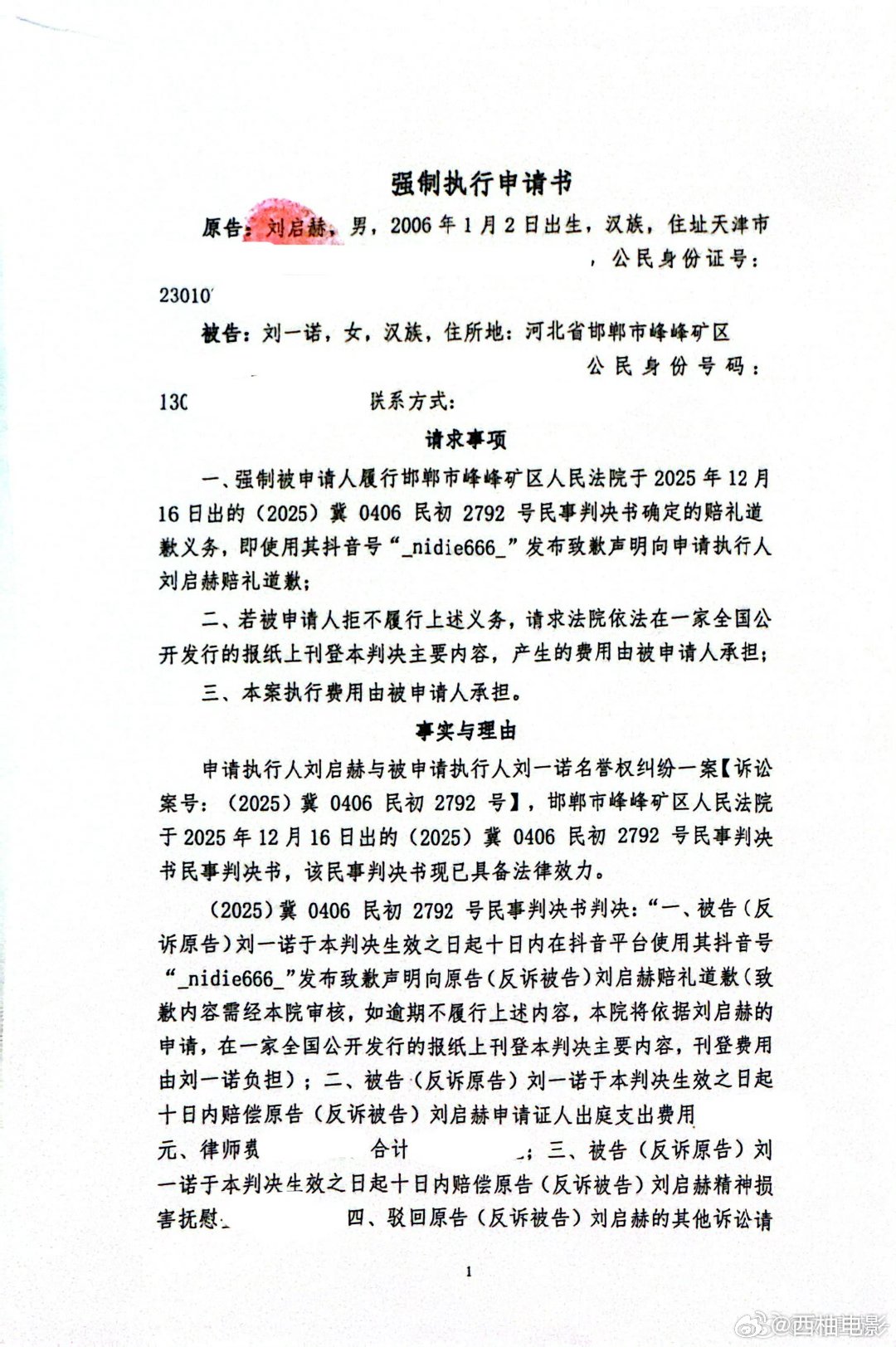 刘启赫申请强执刘一诺刘启赫申请强执刘一诺道歉刘启赫申请强执刘一诺,刘启赫申请强