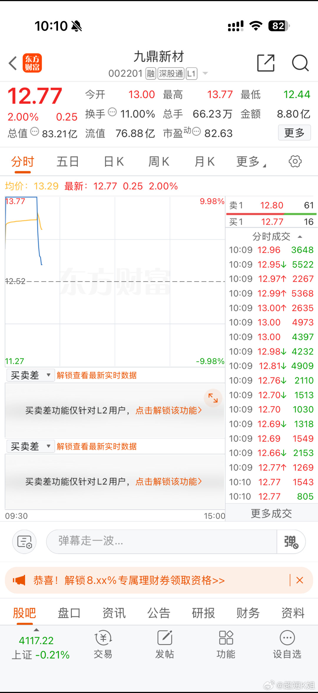 九鼎还好开盘涨停已经通知我的粉丝宝宝下机了这也下山太快了吧