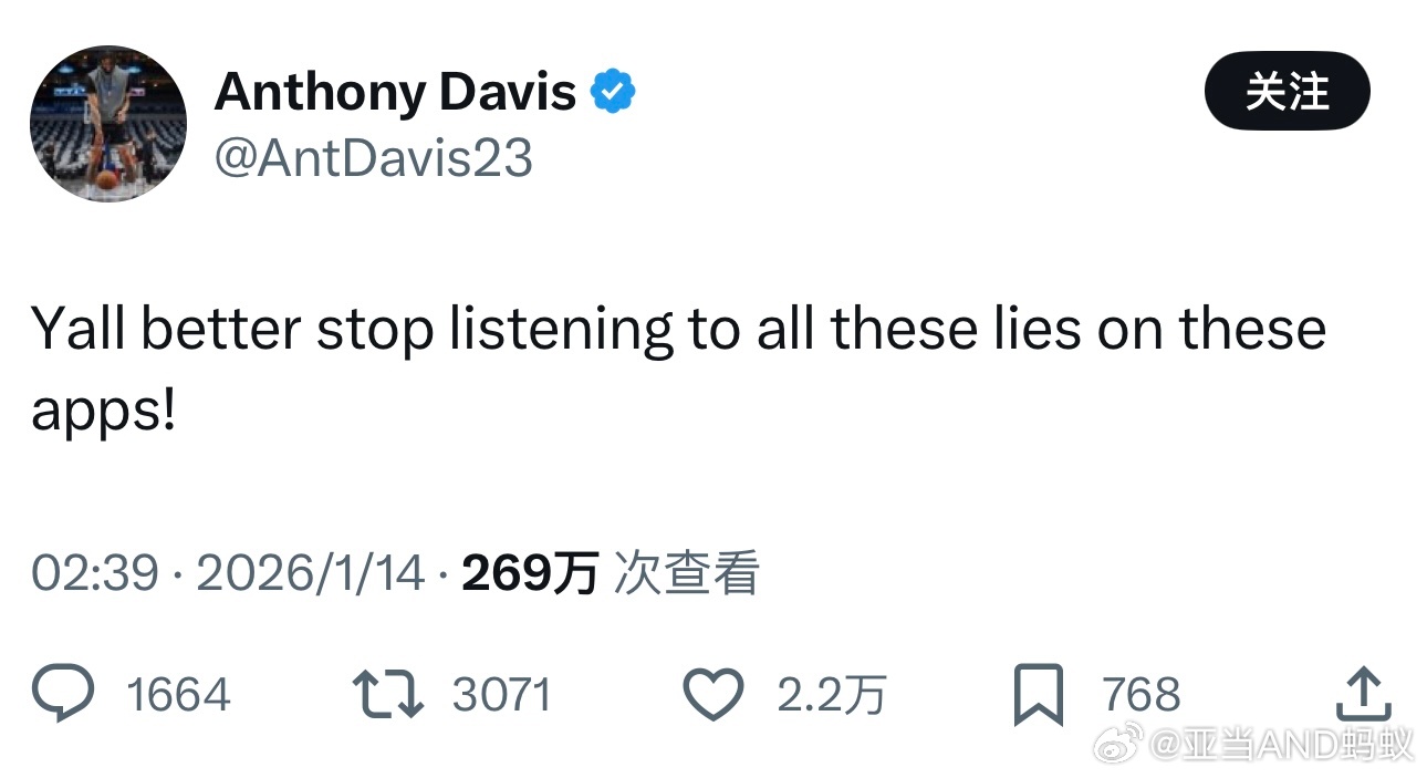 在Shams报道安东尼·戴维斯将接受左手手术治疗,并缺席数月以后。AD本人亲自下场开喷,“你们最好都别听这个APP上的那些鬼话!”Shams也随后更新了报道内容,AD将接受洛杉矶的专家史蒂文·辛的治疗意见,保守治疗并在6周以后再次评估。