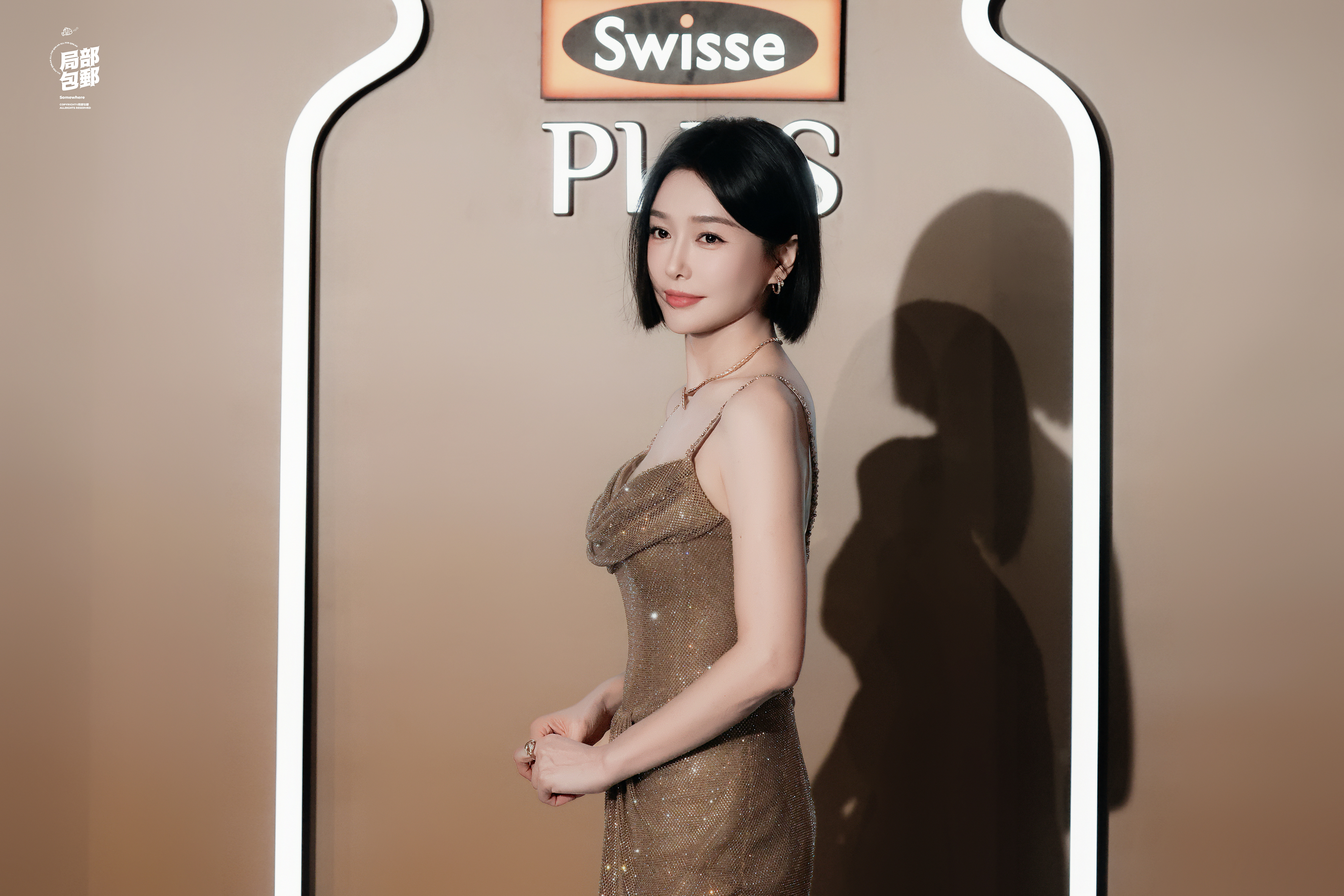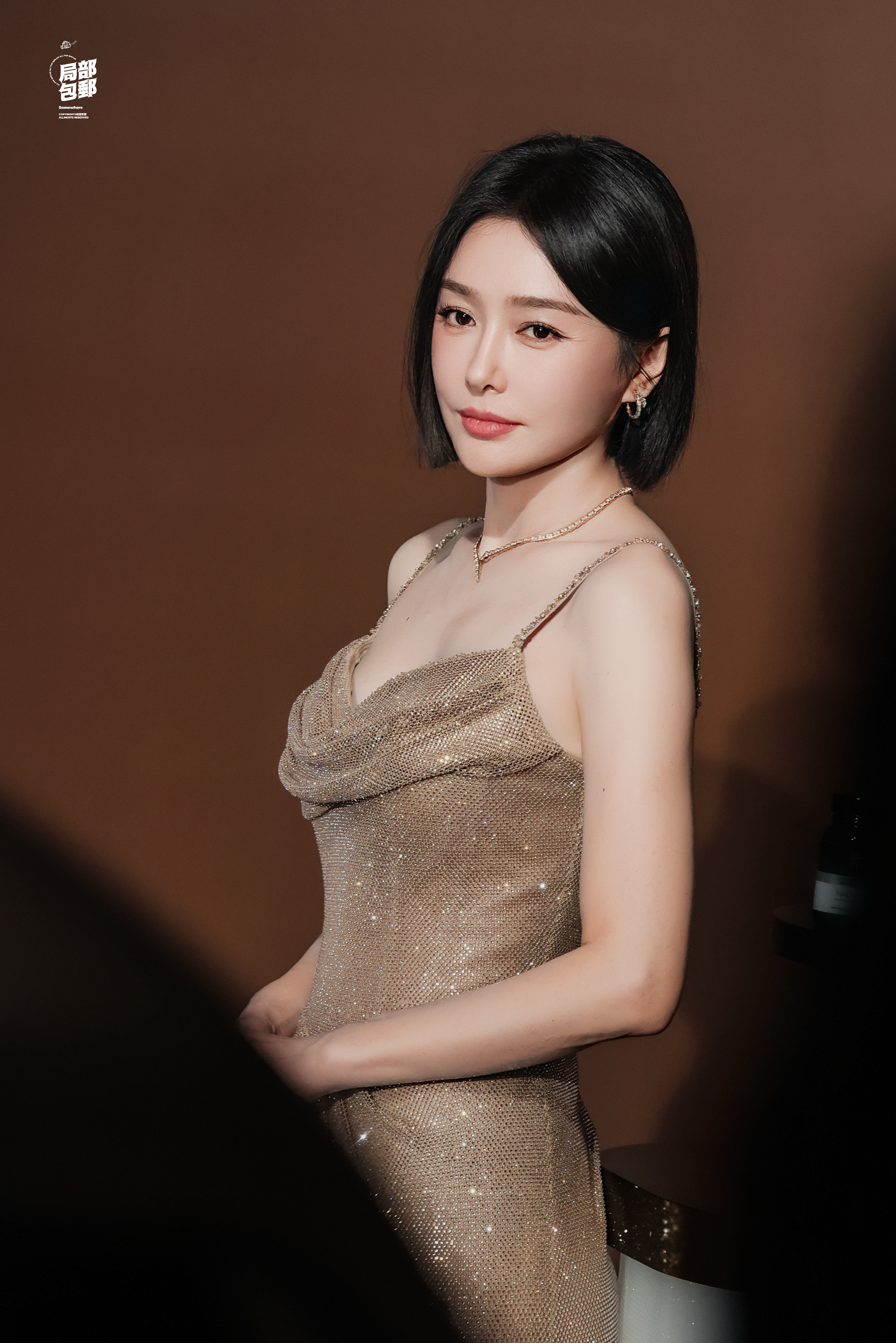 秦岚 鎏金细闪的吊带裙裹着温柔气场,利落短发衬得肩颈线条愈发精致。2025.8.20