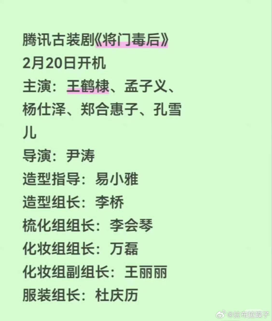 新丽闹了这大半年给《将门毒后》马了这么个班底,我看也没想好好做剧啊