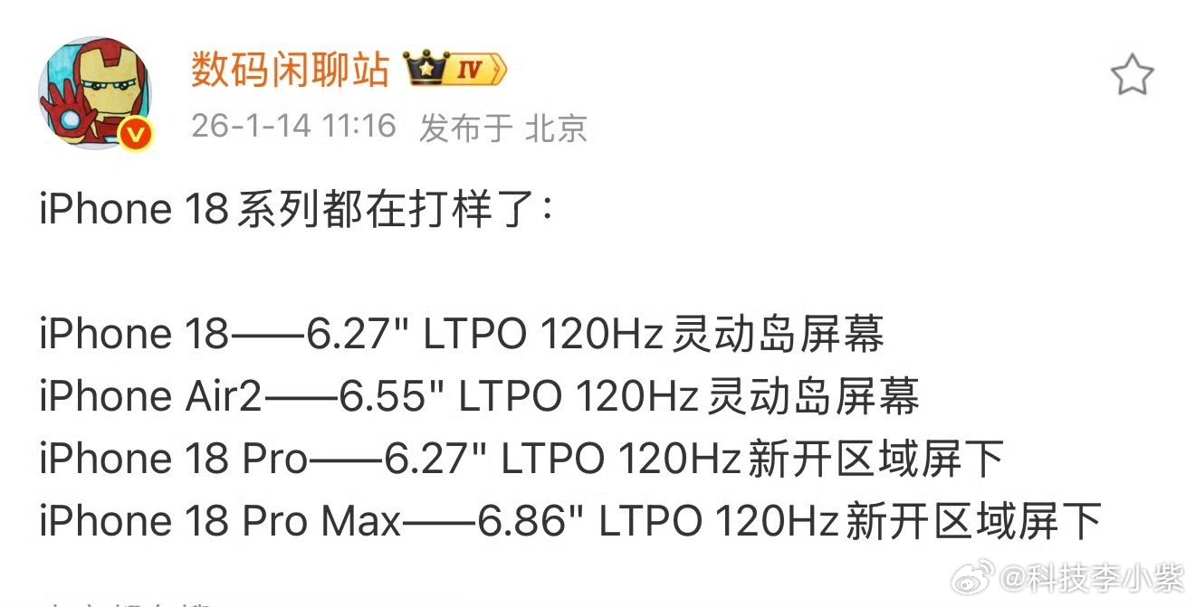 iPhone18Pro新爆料这么多年的了解来看,外观应该不会有啥变化其实只要不是左上角挖孔,我觉得都能接受