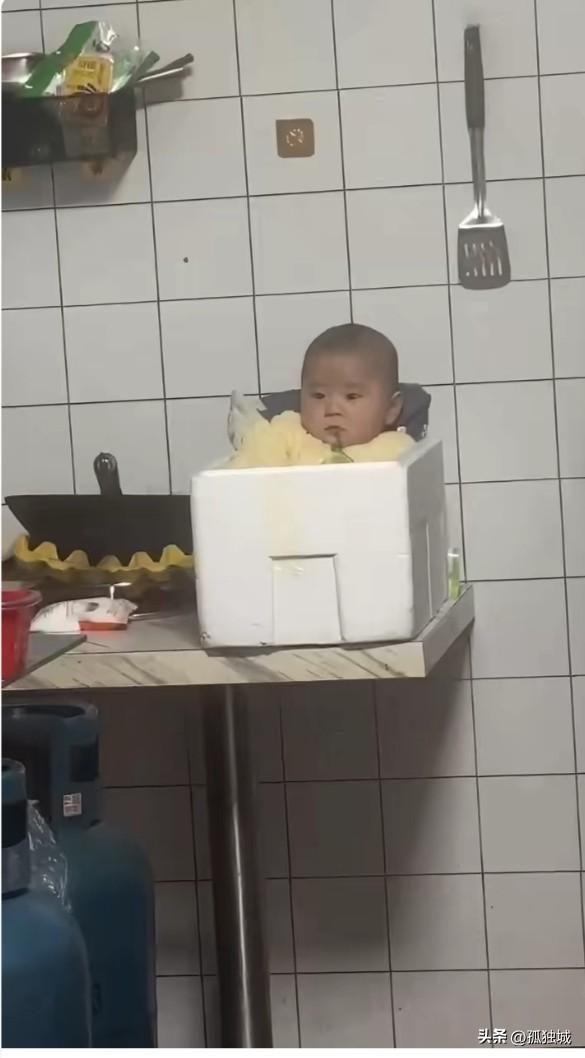 餐饮人一边带孩子一边赚钱的难真的是无人能体会,像这么大点的孩子正是需要人看的时候,而他却静静的坐在泡沫箱里…… 这一幕是不是像极了60后和70后的那代人一边带孩子一边干活的情景,那时候的人都是孩子多没人照看,只能是边带孩子边干活,如今这年头的有些人为什么也是这样?这是家里老人都不在了,还是爷爷奶奶离异了各自重新组建家庭了? 看着孩子坐在泡沫箱里,还把他放在那么高的桌子上,真是有点心疼他,万一掉下来可咋办,这一边带孩子一边赚钱的苦难日子,到底是该说高兴还是该说有苦难言呢?