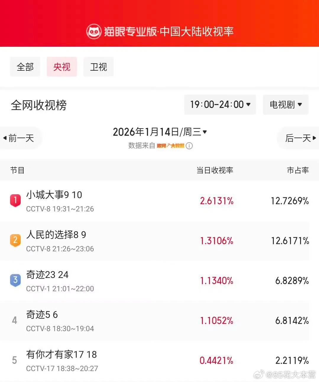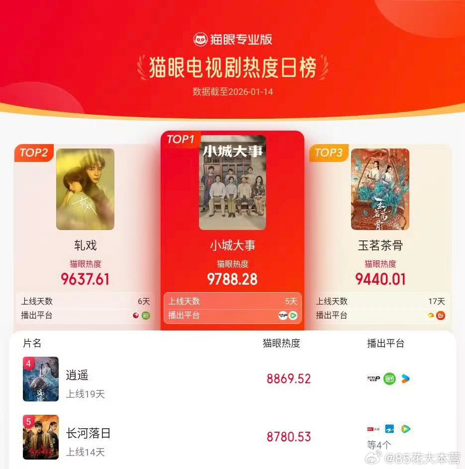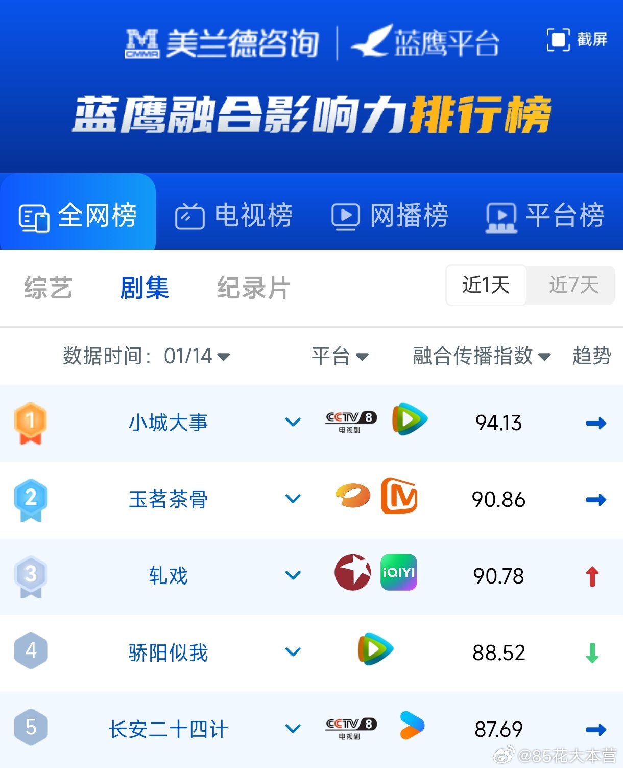 赵丽颖《小城大事》开播5天的TOP1数据~继续冲!期待9宫格的TOP1!小城大事