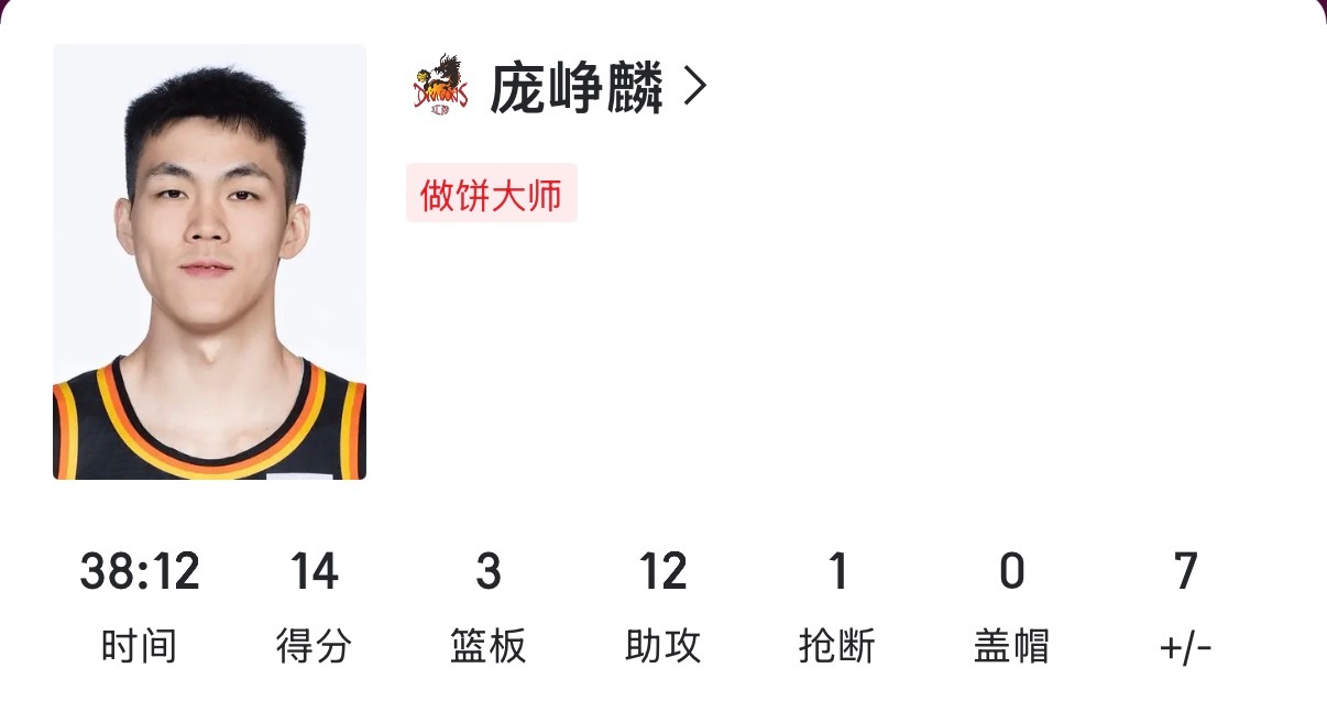 庞峥麟最后一节,到底对北控做了什么?现在很多队都开始包他了,这个待遇可不低,几乎打满全场,末节力挽狂澜,生涯第一次两双。