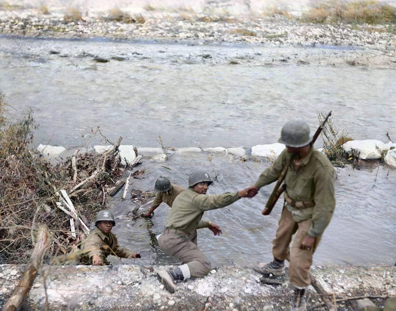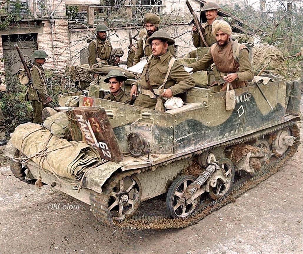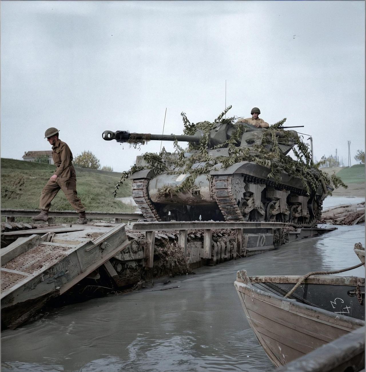 历史影像下的意大利战场! 图一:1945年4月,利古里亚大区,日裔美国大兵正押送德军战俘穿过一处村庄。 图二:1943年12月,基耶蒂省弗利萨村,英属印度第8师第19步兵旅士兵正乘坐一辆通用运载车行进中。 同时期还有纳粹德国扶持的印度军队以及日军在东南亚哄骗上战场的印度国民军,都是以帮助他们从英国殖民体系中赢得独立为幌子。 图三:1944年4月,安齐奥战役期间,美军士兵俘虏了一名年轻的德军军官及其军士长。 他手持缴获的德军军官配置的瓦尔特P38手枪,同时手持M1A1汤普森冲锋枪。 图四:美军士兵正在检查散落一地的德军枪械,那是G34还是G42通用机枪呢?(时间地点不详) 图五:1944年,一辆英军“阿喀琉斯”17磅自行反坦克炮正借助一辆“丘吉尔”架桥车跨越萨维奥河。 图六:1944年5月,泰拉奇纳地区,美军士兵在美军标配军用吉普车旁合影。此时周边轴心国军队应该已被肃清,不然画面不会如此惬意。 图七:1944年6月,意大利境内,一名美军士兵正列拿着德军“坦克杀手”与右侧更小、威力更弱的美军列装的M1A1“巴祖卡”反坦克火箭筒进行对比。 图八:1944年11月,美军第五集团军第92步兵师士兵在一条溪流中发现了布满弹孔的战友遗体。 为将阵亡战友的遗体打捞上岸并妥善安葬,他们组成人链,沿着陡峭的河岸向上传递。第92步兵师是二战期间意大利战场上唯一一支全部由非洲裔美国人组成的步兵单位。 1944年8月至1945年5月战争结束期间,第92师在意大利境内推进了3000多平方英里,俘虏了2万多名德军,但也付出了惨重代价,超过1/4的官兵在战斗中阵亡或负伤。因所部士兵英勇表现,该师共获得1.2万余枚勋章与嘉奖,其中包括两枚荣誉勋章。 图九:德意联军正在意大利境内作战,到1944年,盟军已改变对抗虎式坦克的战术,转而依赖空中优势、集中炮火和压倒性的数量优势,而非与之进行直接的坦克对战。而意大利此时早已倒戈盟国。仍在与德军联合作战的意军为德军扶持的傀儡政府社会共和国军队。二战 武器装备 意大利 结语:欢迎朋友们关注、点赞,评论区发表宝贵观点与建议,并将来自己感兴趣的历史事件留言下来。我将尽力搜集资料,整理成篇,与您共勉! 您的慷慨支持是我持续创作更新的永续动力。文中常有时间地点不详或地名无法译出之状况,若您有案可查,请帮忙斧正补充!