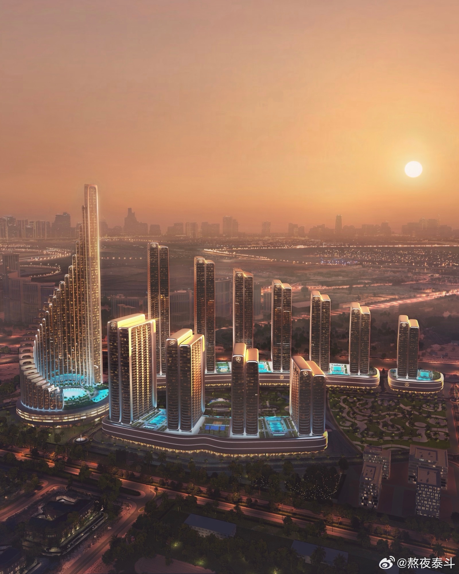 梅赛德斯-奔驰(Mercedes-Benz Places)和宾加蒂(Binghatti)在迪拜推出了第二个房地产项目该建筑概念被设想为“城中之城”,占地近83.6万平方米,包括分布在城市各处的1.3万多个住宅单元。“城中之城”的概念源于梅赛德斯-奔驰的清晰设计理念,将品牌DNA转化为建筑,从而创造情感参照点。多塔概念将独特的住宅概念与策划的生活方式、健康、体育和零售活动相结合。奔驰