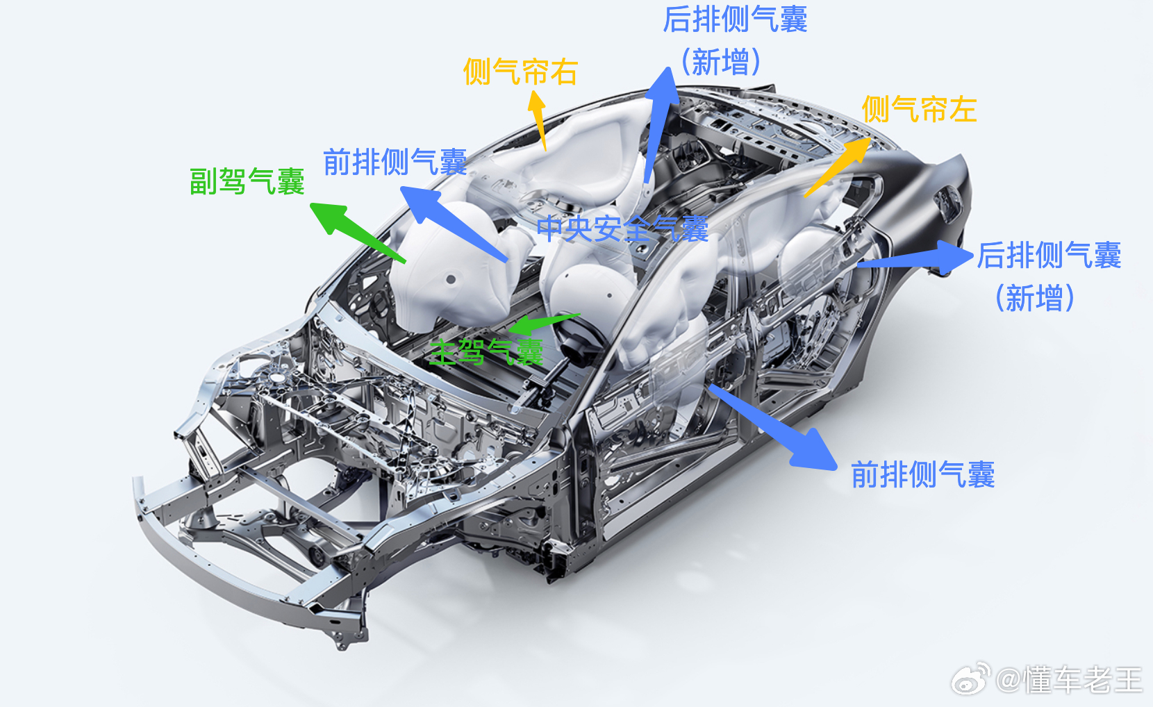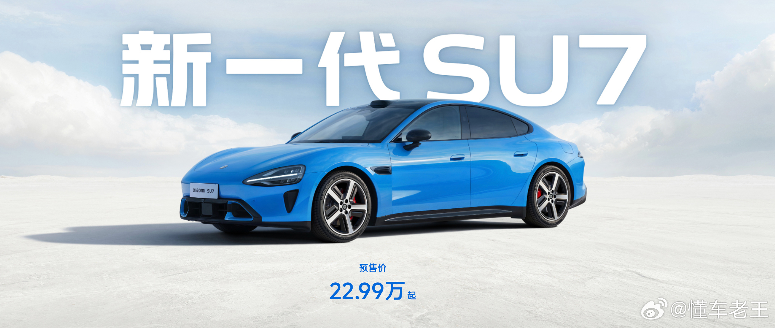 小米新SU7的一些信息分享一下:外观内饰方面,卡布里蓝色的车漆,内饰增加了暗夜黑,20寸更有立体感的轮毂,前脸雷达变更导致的微改和前隔栅升级,副仪表台和方向盘有一定优化,门板和座椅锋线的一些小优化。 安全方面我这边得到的消息是 标配9气囊(原先是7个)新增了两个后排侧气囊,车身A柱内嵌热气胀管并且延伸冗余做了升级,从A柱一直延伸到C柱,新增门锁后备电源(电容),电池全系可以说都是800V平台了(标准、Pro是752V,Max是897V)。辅助驾驶方面,小蓝灯上了,然后激光雷达标配了,算力给到了700TOPS。 动力和驾控方面V6s Plus电机上车,全系标配前窄后宽轮胎与前四活塞固定卡钳。Pro和Max标配闭式双腔空簧、CDC®减振器,Max标配Brembo®固定卡钳和低金属制动片。懂车老王车评精选小米SU7汽场全开