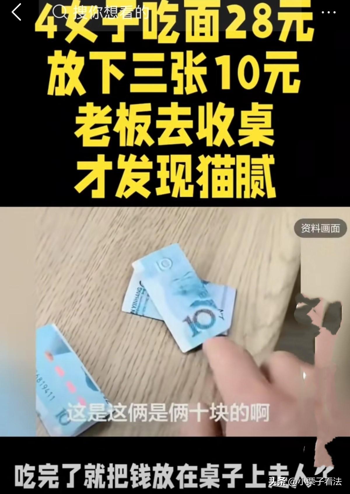 “以为自己很聪明!人所不齿!”4名女子去面馆吃了4碗面28元,趁老板忙时,喊了声钱放餐桌上了,就抹嘴有人了。老板老远望过去看她们放了3张10元的,心里还想着她们真大方,2元都不找零了?等老板收拾她们的餐桌时,发现了猫腻,竟然是2张10元,一张跌成两张的样子,少给8元!这小本生意能赚多少啊!老板气愤地跑出店找人,4人已无影无踪。网友:一看就是天天打麻将的主! 刘先生夫妻开面馆多年,这两年虽生意不好干,钱难赚,但他在附近口碑不错。 他们对顾客真诚相待,热情服务,再加上面馆的菜品物美价廉,赢得了不少老顾客回头光顾,一到饭点,店里仍旧红红火火。 那日中午,刘先生收拾了几桌碗筷,就赶紧为来结账的顾客收款。 这时,店里进来4名女顾客,她们穿着时尚,嬉笑着站在前台看点餐目录,最后她们意见统一决定吃素面。 刘先生吆喝一声,4碗素面,后厨的妻子回应了一声,就开始忙乎做餐食。 刘先生赶紧又去帮忙,不一会热气腾腾的四碗面就端上餐桌,刘先生客气地说,您4位慢用!就匆忙答对别的顾客去了。 午餐时间,整个小餐馆里,人来人往,热气腾腾,面条的香味在空气中弥漫。 4名女顾客津津有味地吃着面条,时而传来她们的笑声。吃完面的女士们对着正在忙乎的刘先生喊了声:老板,把钱放在餐桌上了啊!然后抽张纸巾,抹了把嘴,抬腿就走了。 刘先生抬头望向这边的餐桌,看桌上放着3张10元的,就应答了声:可以,放那吧,还、还没找钱呢? 可他话没说完,人都出了门。刘先生心想,这4个女的2块钱都不用找了,真大方!有钱人啊! 要说给现金放在桌上走人的事不稀奇,很多顾客看他们两口子太忙,吃完放下钱就走,一般都是正好的钱,不用找零。 等刘先生来她们餐桌收拾碗筷,想着把钱收起来时,惊呆了!原本看到的3张10元的,还以为多给了2元,结果他拿到手才发现竟是2张10元! 有一张10元折叠摆放在那,远远看去就好像2张压在一起!28元的面,就给20元,还少给了8元! 她们怎么能这样?这小本生意,赚个辛苦钱,这几碗面白卖了!太缺德了! 他急呼呼地往店外跑,想着追上她们,讨回差付的钱。可那4人早已无影无踪,不知去处。 刘先生做了这么多年生意,虽见过形形色色的人和事,但把钱折叠以一充两的还是第一次见到,他越想越生气,觉得应把此事发到网上,让其他商家注意,以防再次上当受骗! 有人说:老板不贪那2元钱,能损失8元钱吗?贪小便宜吃大亏! 有人说:4人4碗面才28元,还至于耍花招耍心眼少付8元吗?不够丢人现眼的了!该把她们曝光,让她们的家人看看,那点钱值得丢这个脸不? 还有人说:这叠钱、摆钱的手法,一看4个女人就是天天打麻将的主!鱼找鱼虾找虾,都是爱占便宜的人! 4名女子吃28元素面,用折叠10元纸钞玩“以一充两”的把戏,骗走8元餐费,看似“小聪明”,实则丢了为人最基本的体面。 刘先生夫妇经营面馆多年,靠的是物美价廉和真诚服务,一碗面赚的是起早贪黑的辛苦钱。 令人寒心的是,趁忙行骗的行为,消费的是商家对顾客的信任,当放下钱就走的默契被利用,未来再有顾客匆匆离店,老板恐怕要多一份警惕,少一份善意。 诚信从不是宏大命题,而是一碗面、一笔小账的较真。若人人都觉得“小钱不值得”,社会的信任链条只会越来越脆。 莫把精明当智慧,莫因小利失人心。毕竟,丢了诚信,再精致的伪装也遮不住体面的裂痕。 《民法典》第148条规定:一方以欺诈手段,使对方在违背真实意思的情况下实施的民事法律行为,受欺诈方有权请求人民法院或者仲裁机构予以撤销。 《消费者权益保护法》第55条第一款规定:经营者提供商品或者服务有欺诈行为的,应当按照消费者的要求增加赔偿其受到的损失,增加赔偿的金额为消费者购买商品的价款或者接受服务的费用的3倍;增加赔偿的金额不足500百元的,为500元。 4名女子明知应付28元餐费,却故意将1张10元纸币折叠伪装成2张,虚构“已足额支付30元”的事实,利用老板忙碌未当场核对的机会逃离。 主观上具有欺诈故意,客观上实施了欺诈行为,导致老板产生错误认知并放弃核对收款,符合欺诈的构成要件。 老板作为受欺诈方,有权要求4名女子补足8元餐费,若协商无果可通过诉讼维权。 《刑法》第266条规定:诈骗公私财物,数额较大的,处3年以下有期徒刑、拘役或者管制,并处或者单处罚金;…… 4名女子的行为虽具有欺骗性,但涉案金额仅8元,远未达到诈骗罪“数额较大”的立案标准,未达到刑事犯罪的追诉门槛,故不构成刑事犯罪。 仅属于民事欺诈行为。但其行为违背诚实信用原则,损害商家合法权益,需承担补足欠款的民事责任,同时应受到道德谴责。 您怎么看4位女顾客的做法呢?欢迎一起留言讨论!
