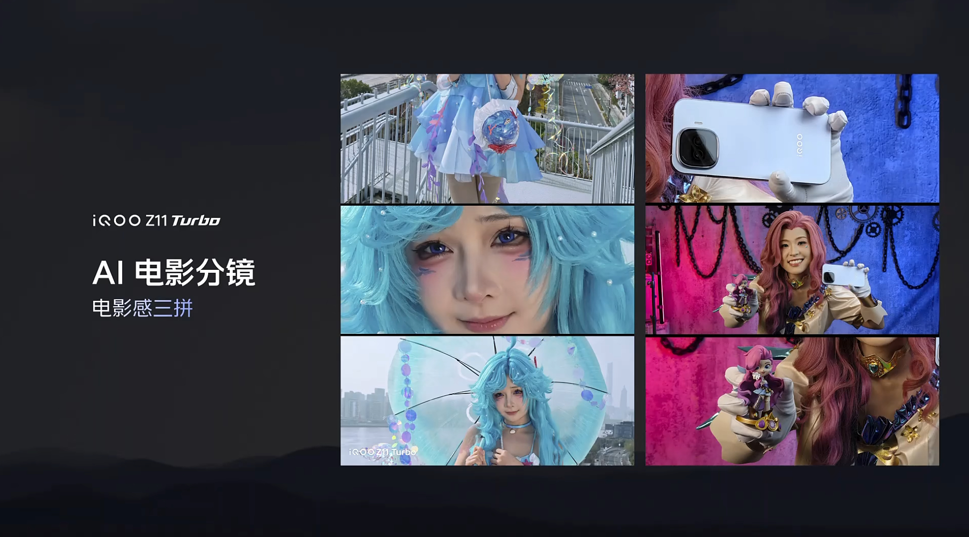 iQOO Z11 Turbo 主摄采用一颗2亿像素镜头,1/1.56英寸大底,f/1.88光圈,支持 OIS光学防抖,旗舰上拥有的AI电影分镜、动图照片以及多款滤镜都是支持的,没想到性能机也有这么强的影像配置。