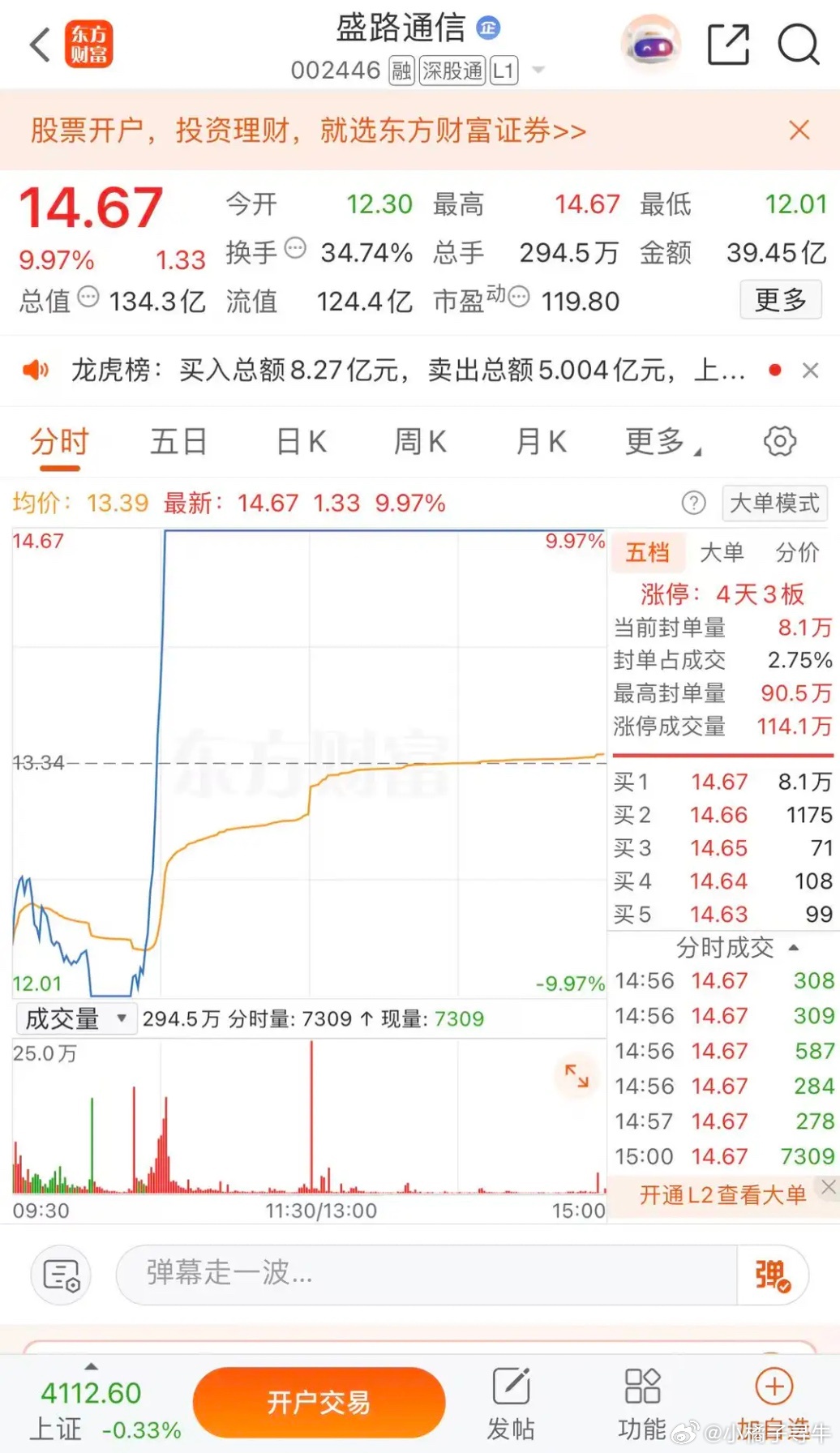 利欧股份停牌核查,盛路通信地天板,荣盛发展明日涨停盛路通信涨停收盘报收14.67
