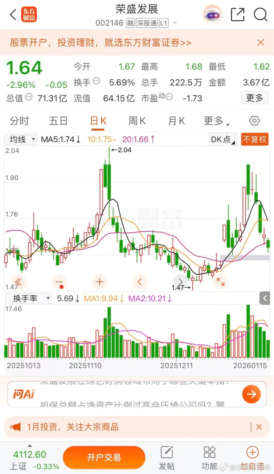 利欧股份停牌核查,盛路通信地天板,荣盛发展明日涨停盛路通信涨停收盘报收14.67元每股,成交金额39.45亿,明日看来一字板涨停了。大哥利欧股份停牌核查,今日收盘报收10.40元每股,成交金额253.4亿,涨幅4.73%,总市值704.3亿,未来千亿市值有望。荣盛发展跌幅2.96%,收盘报收1.64元每股,成交金额3.67亿,明日涨停1.80元,有可能开启连板模式。把握节奏,2026年沪指5000点可期
