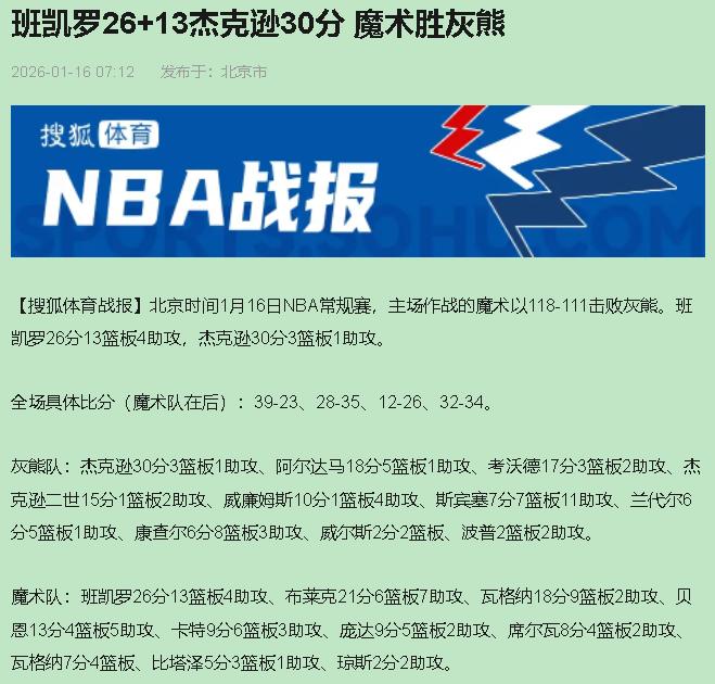 看球这么多年,今天灰熊这输法真给我看破防了。都说“赢了数据输了球”憋屈,他们这是球和数据都没捞着,连建队底裤都快被扒干净了——没了莫兰特,你们所谓的“核心”根本带不动队。 小贾伦-杰克逊拿了30分?是,数据漂亮。但咱们看球的都懂,这不是打2K。一个DPOY、被供起来的“内线基石”,在德国这焦点战就抢3个篮板?对面班凯罗抢13个还送助攻,这对比太扎心了。说白了,杰克逊的防守和篮板,压根撑不起一支想赢球的队伍。灰熊防线崩盘,第一个窟窿就在他这儿。 更让人血压升高的是管理层。最近9场输7场,明眼人都知道缺个能持球硬解的。结果呢?交易流言里,他们居然在讨论送走莫兰特?我真看不懂。是,莫兰特场外不省心,可这支球队唯一能撕开防守、在关键时刻不讲理的,只有他。指望一个防守型内线当进攻核心带队冲?这脑溢血操作,简直像拿盾牌当冲锋枪使。 那魔术怎么就能在主场完成20分逆转?人家思路清楚得很:关键时刻,球就得给最能打的人。最后四分钟,是小瓦格纳的三分扳平,也是他连拿5分收下比赛。魔术知道谁值得信赖。反观灰熊,需要有人像上赛季莫兰特那样硬解时,谁能站出来?杰克逊?他更像个需要喂球的终结点,不是创造机会的发动机。 所以这场球,比分是魔术118-111赢了,但背后是两队建队逻辑的云泥之别。魔术围绕班凯罗和瓦格纳建队,年轻但有明确核心,韧性十足。灰熊呢?想靠“体系”和防守填巨星的坑,一到高端局就露馅——没有顶级持球手,战术跑得再花也是纸老虎。 别再被30分迷惑了。这场球给灰熊的警告够响了:要么赶紧找回健康的莫兰特,实实在在围绕他建队;要么就承认自己押错了宝,后面的路只会更难走。至于魔术?这帮年轻人经过这一仗,心气更足了。输赢一场球,看明白的,都是未来。班凯罗26+13杰克逊30分 魔术胜灰熊